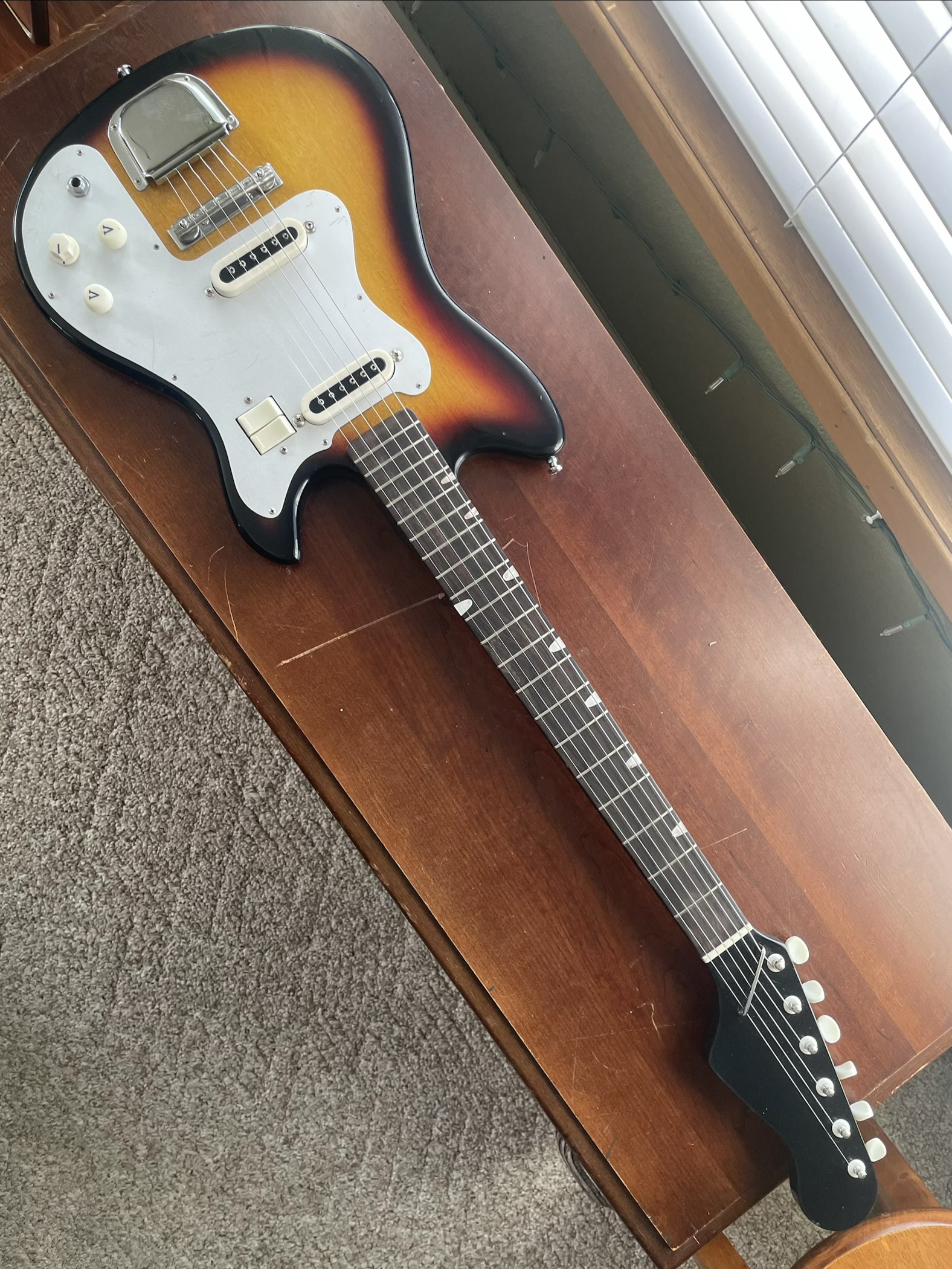 >When you pick up a new electric-guitar, your hands tell you much .. it's weight, which tells you about the wood used .. the feel of the neck under your hand needs to be comfortable .. and unplugged it should still sound good - welcoming .. This guitar doesn't feel alive and doesn't sound alive .. plug it in and it still feels and sounds wrong .. sure, it's retro and pretty .. so if all you want is Looks .. go for it ..