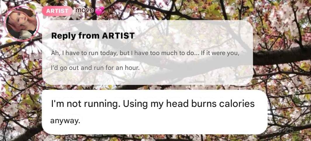 >i won’t go for a run. since using my brain a lot burns calories anyway