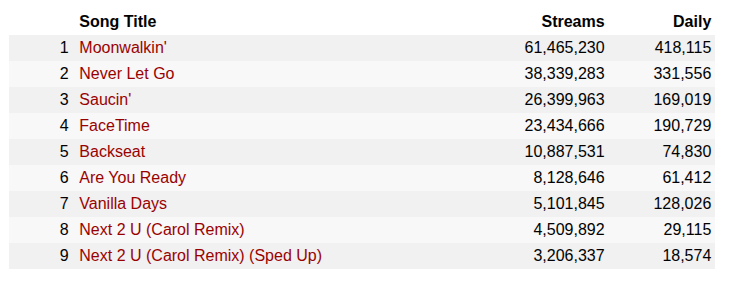 >>130095820Didn't they just debut this yearThese numbers are good already imomany people are listening to most of their songs not just one or two