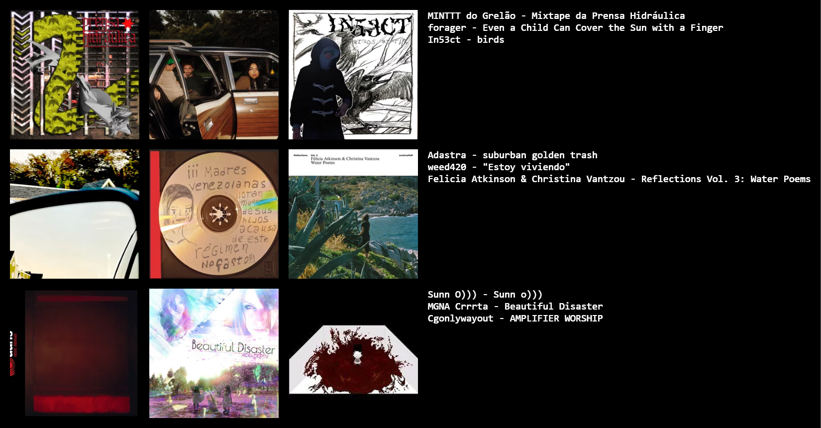 >>130103559The fact that he's posting AOTYs for 2026, whether good or not, gives him all the right to act superior to the majority of this board who just circlejerk the same tourist-core over and over again
