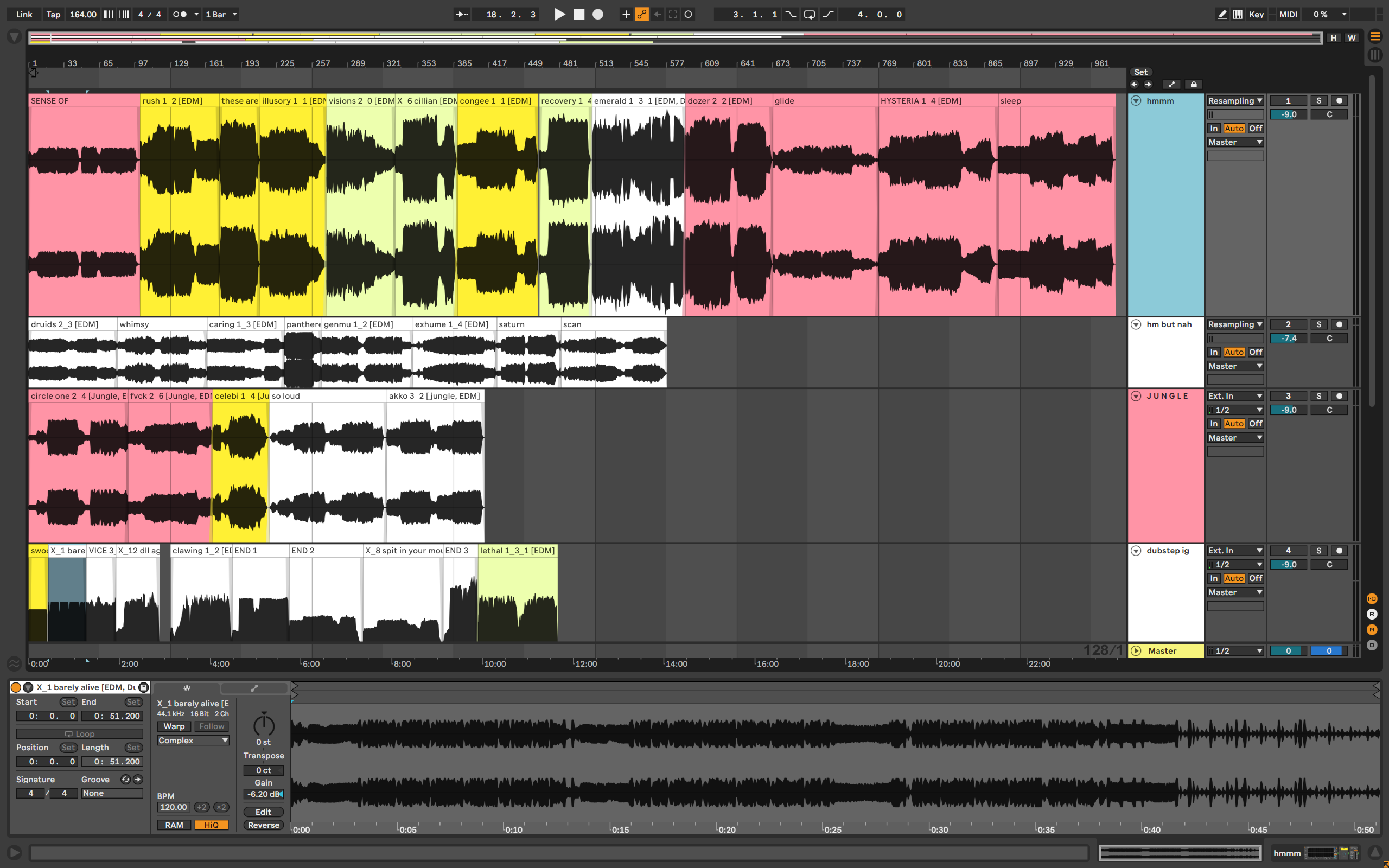 >>130110276well first off you need to look at the mix first. you need to scoop your low mids way harder, mostly with the bass. also your bass stays pretty high which isn't necessarily always a no-go but it's definitely not helping against the pad and doesn't stack up against others in the style sub wise. the pad also shares tones with the lead.all of that is contributing to poor use of room frequency wise, and will contribute to final loudness/clarity.no idea what you're doing with your kick and snare but you want those to be the primary triggers of any clipping/limiting down the line so that they have more perceived impact.