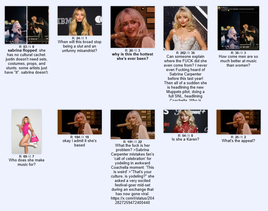 >>130140975This Sabrina spam that was necrobumped for a week alongside all the still ongoing Emily Armstrong spam convinced me. Scientologists have infiltrated the board