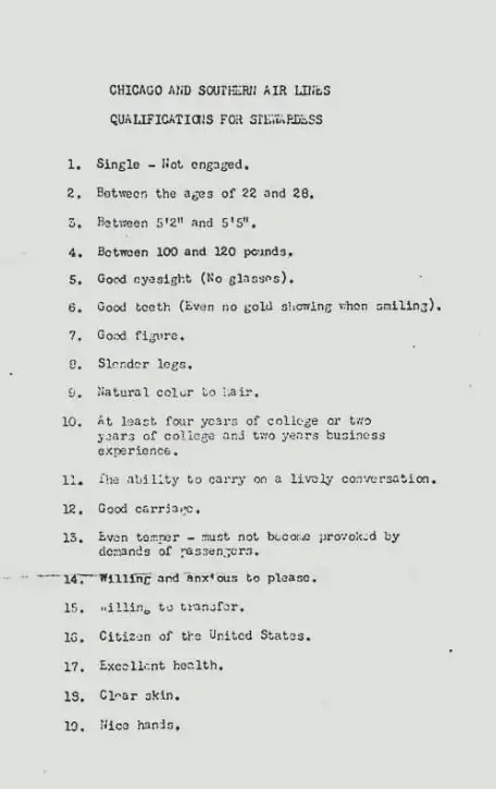 Flight attendants were required to be hot and single until you know who ruined it in the mid 1980s