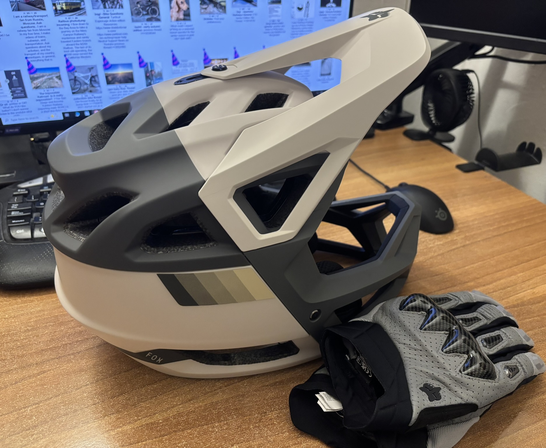 >>2054949>>2055483and here's the attention whoring helmet, kek(bought the gloves but they feel wonky af so I never used them, maybe if one day I get a full-sus downhill bike or something