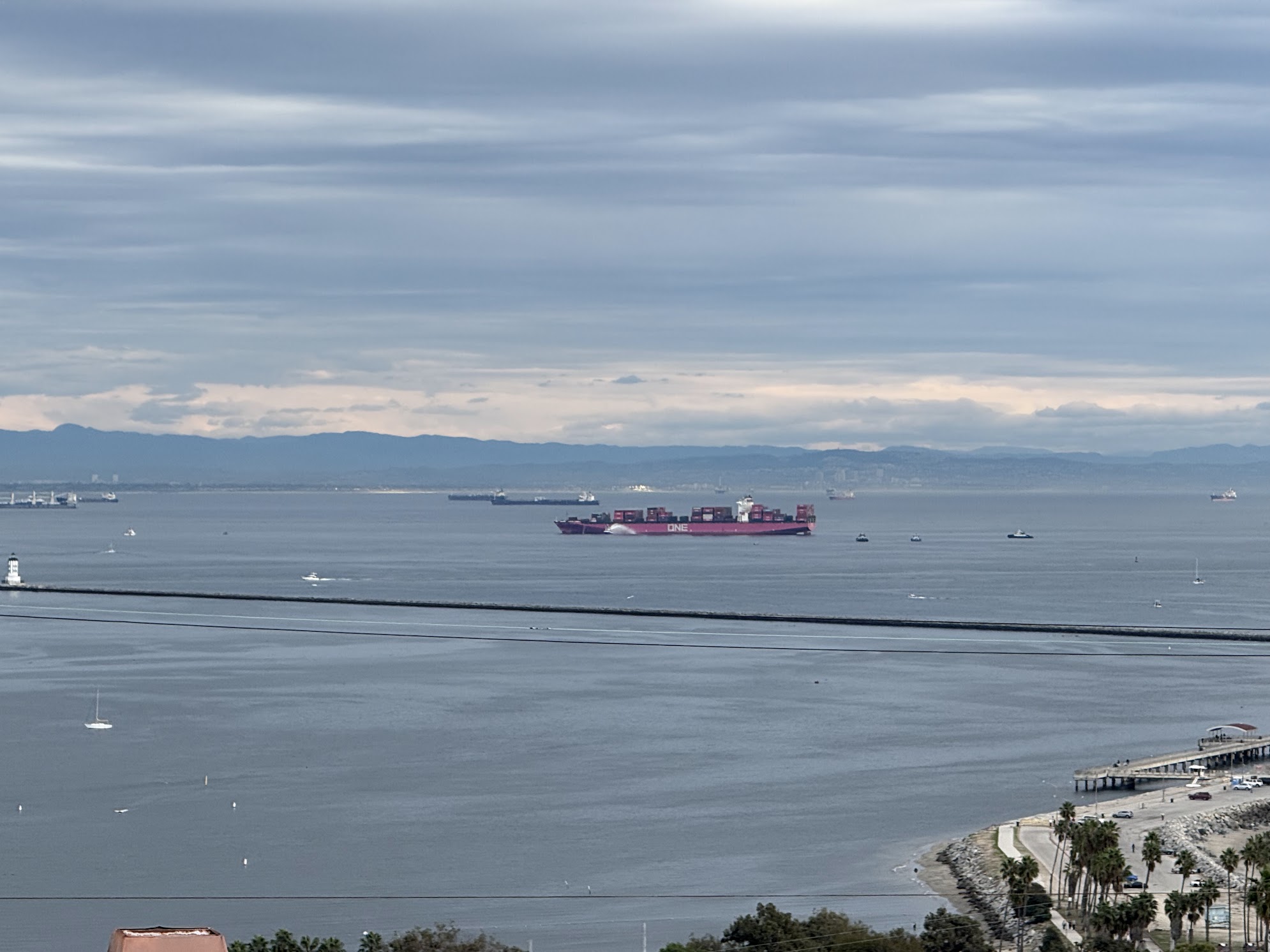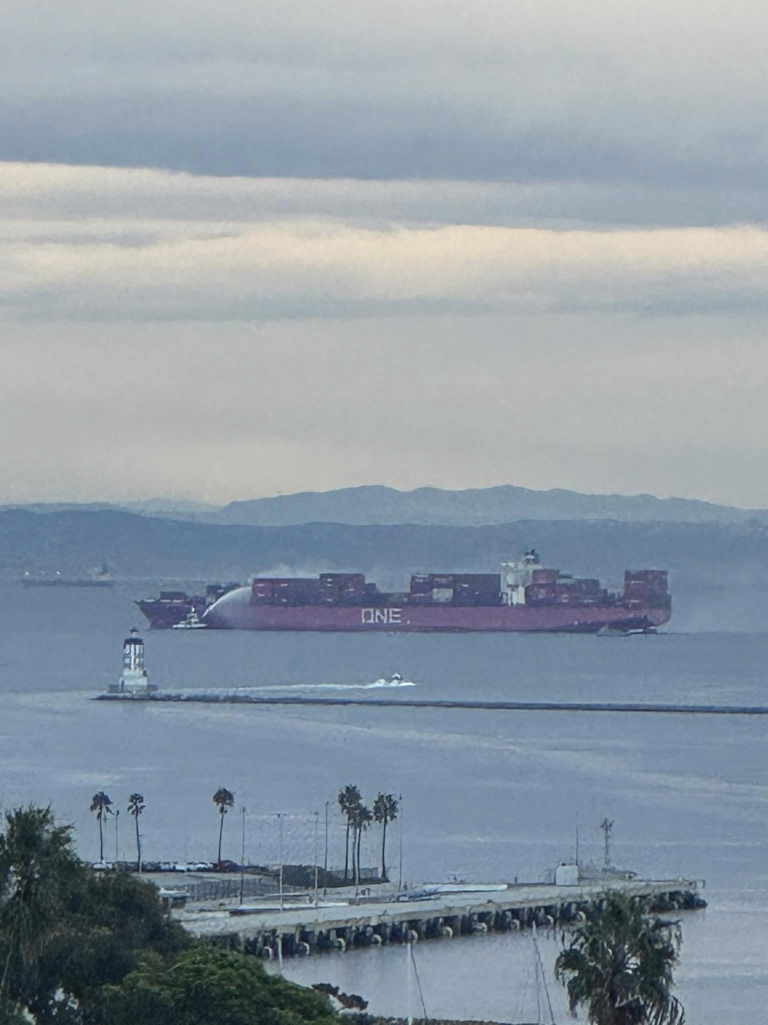Container ship berthed in Port of LA caught fire last night. Was towed out to sea.https://www.youtube.com/watch?v=au1fAtnLwdU