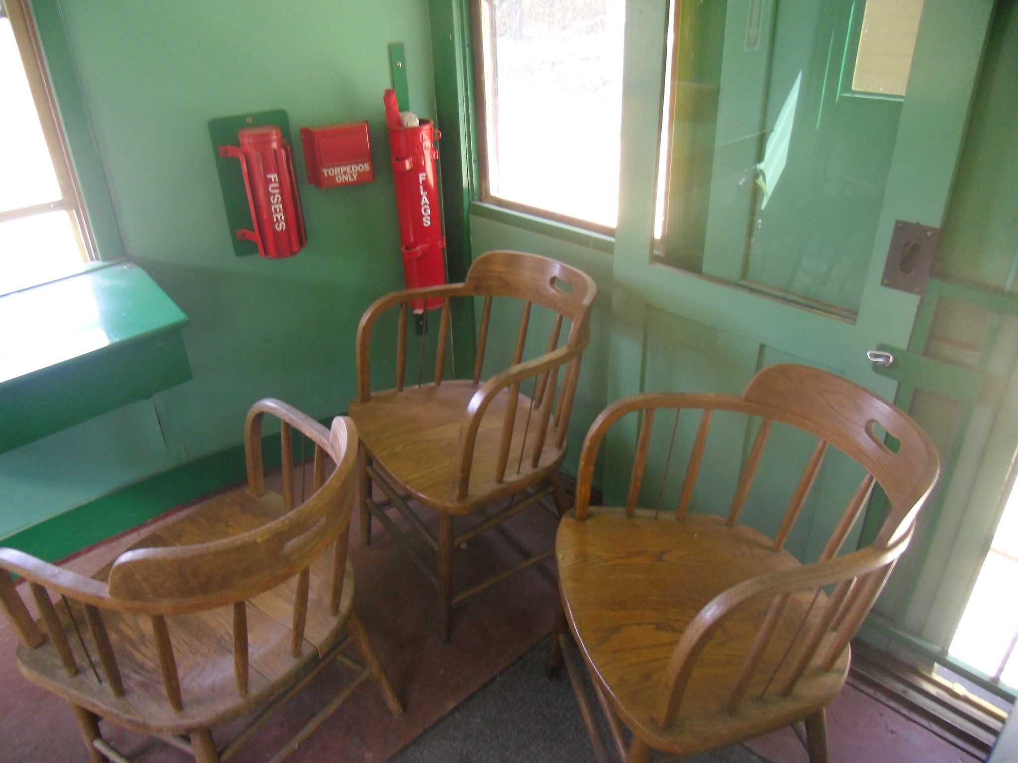 >>2055085>Very surprised the chairs are unsecured to the floor.I think back when this car was in revenue service, this room was mainly used for luggage/light freight storage, now it's used by the crew so they can run the train in reverse, watching the and communicating via shortrange radio.I've been on the Mount Hood Railway and some of their dining cars use unsecured seating.