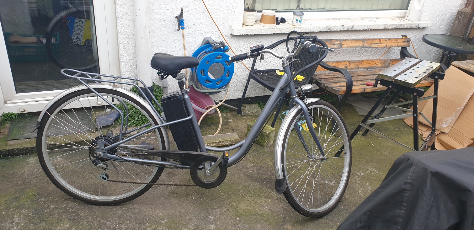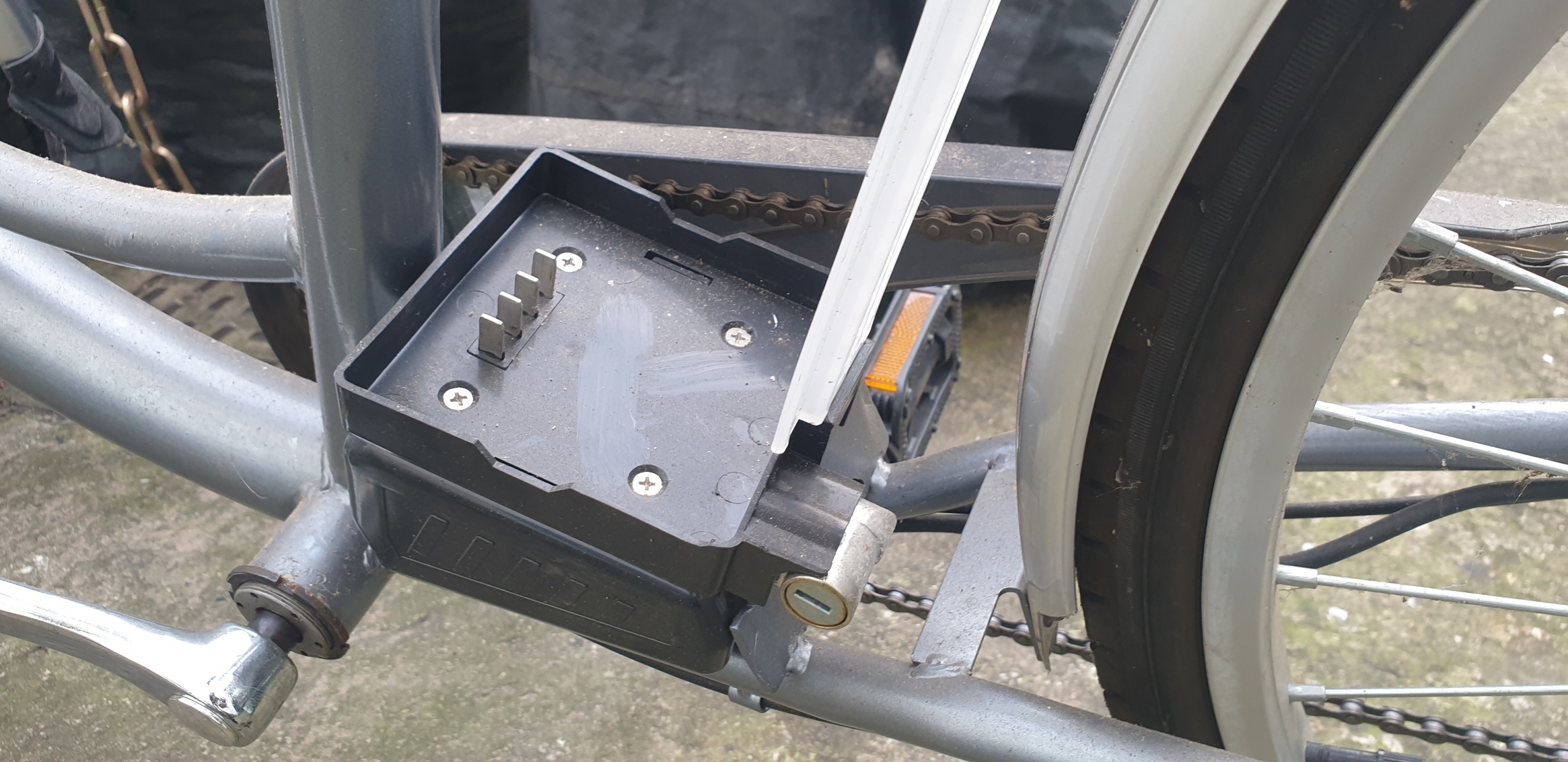 tl:dr>bought e bike ridiculously cheap , £20 (under $30)>its missing a battery >not a single sticker/logo/marking to tell me what this thing is>no codes/info labels on rear hub to help me out either Rode it home yesterday and it rides fine(apart from being a heavy pig , brakes/gears all working , barely a mark on the bike , it was used briefly around a caravan park ive been told Im going to assume its a 24v but how can i be sure? Also how can i tell the polarity of the charge plate (the 4 prongs) before i slam a random battery in there and kill it? (no markings on there either) Sorry for the silly questions but i have 0 idea around e bikes Pic relThat is a random battery case i found when buying the bike, i have another but they seem to the same, some type of universal battery cover, it has different slide plates on each side, must be for e scooters or something