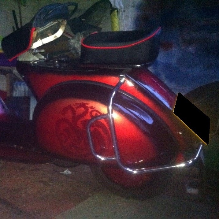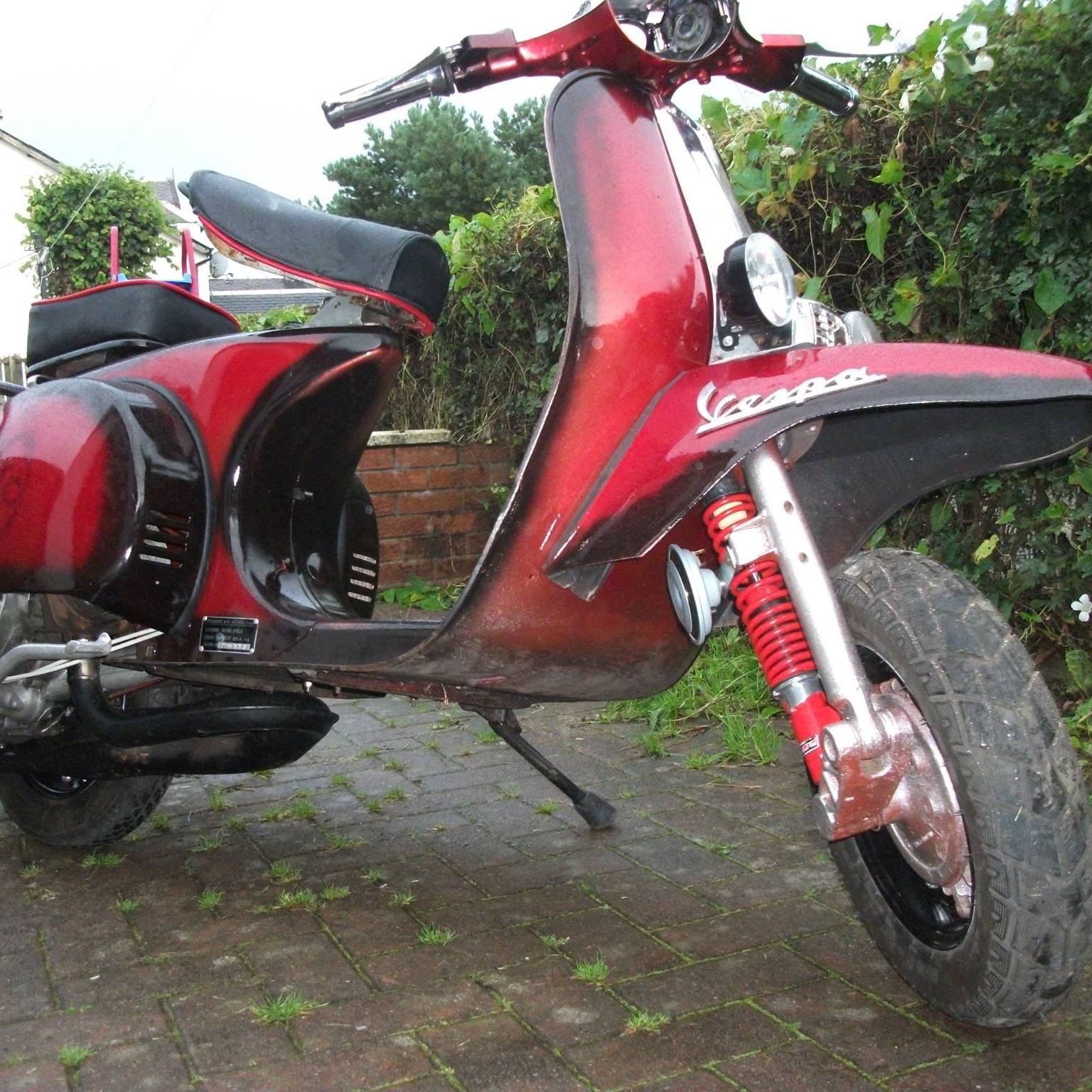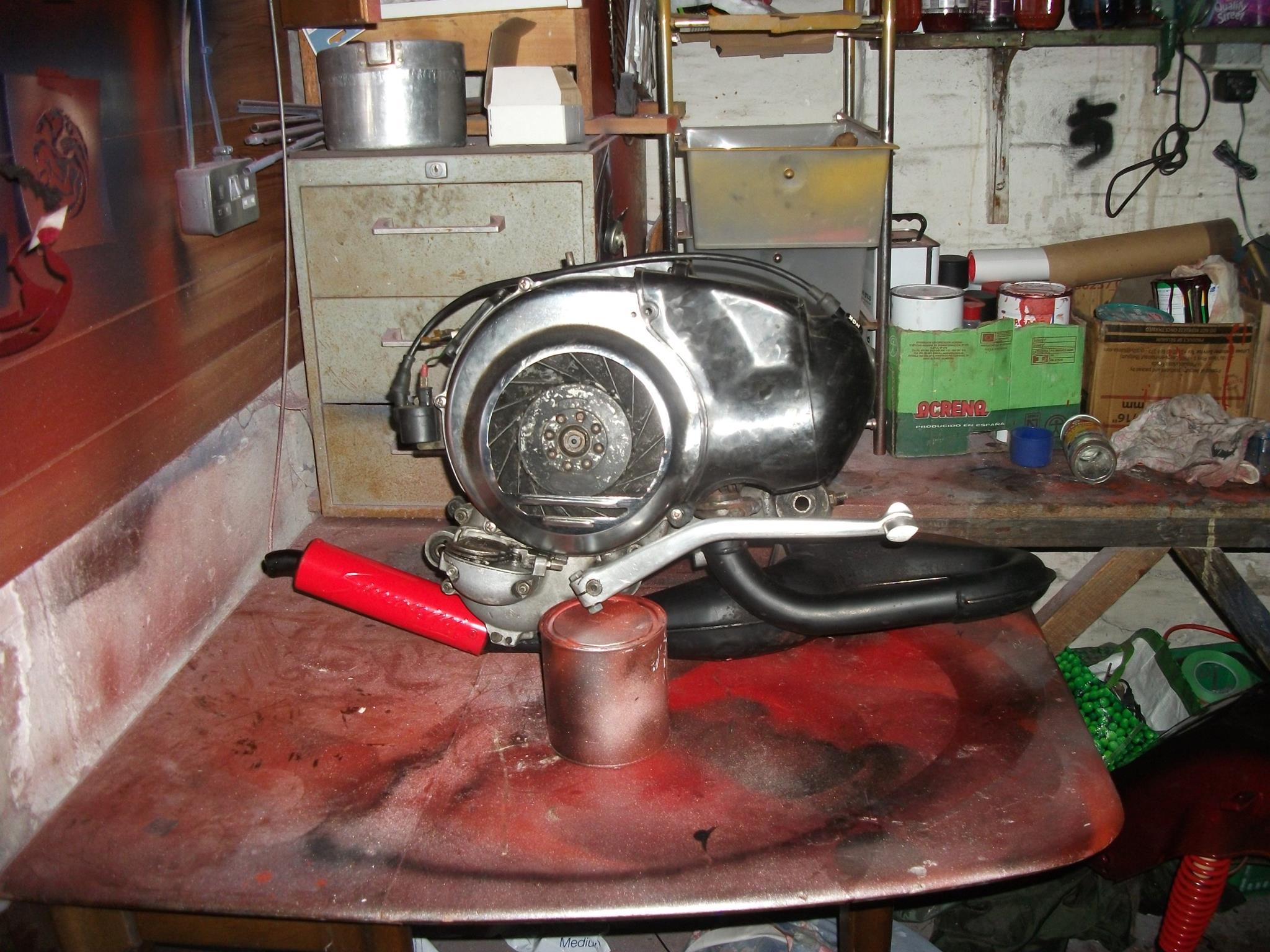 >>2065657The exhaust? The expansion chamber, the bit painted black, allows the exhaust gases to cool and expand, this creates a partial vacuum so the engine sucks in much more fuel than a standard exhaust.It's still the original engine casing, but 70 to 80% of the internals are either machined, polished, ported or new.Because the exhaust is making the engine suck more fuel the fuel needs to flow much faster.Lightened flywheel reduces inertia and makes the engine more responsive to throttle movement.Tooling? Nothing special, screwdrivers, wrenches, big fuckin hammerAs for top speed, 80-85mph which on ten inch wheels and drum brakes is fast enough>>2065678I've had Vespas since 1981, yes i really am an old bastard. This was years of experience and my personal shopping list that I'd developed over that time. I wanted nippy and responsive but with dependability and a decentish top speed.Parts we're really an issue as far as costs were concerned. I think the most expensive addition was the Polini kit which should have been over £350 but it was an order that had been sitting on a shelf for a while and I talked it down to £120. Most of the build was bought at various scooter rallies secondhand, some of the parts were gifted to me, the side stand and the chrome grips. The side panels came off a scooter my mate had painted and then placed them paint side down on a piece of carpet, the daft old bugger!! Painting cost me about £200 total, did all the prep and paint myself even though the last time I painted anything it was a 1/72 scale Lanaster when I was about 14.This is how it looked when I bought it for £700