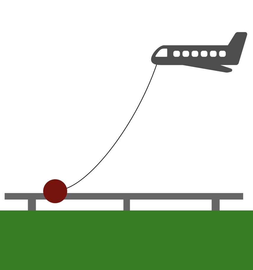 High-speed rail cons:- requires expensive overbuilt tracks to handle the loads- the same goes for train itself - which means it's heavyAirliner cons:- uses tons of fuel to fly- requires highly skilled (expensive) personel to operate- airports take a lot of spaceWhat if you merged the two into one system?On the ground you would only need a single cheap to build rail, it wouldn't have to be perfect - bumps would be absorbed by the (slightly) elastic tether. Maybe short strips of two rails for landing.No fuel required - plane would be pulled by a small electrically powered "engine" on the ground.Depending on how long the tether can be you would also maybe get some advantages from lower air density (lower drag) at altitude like normal planes do.
