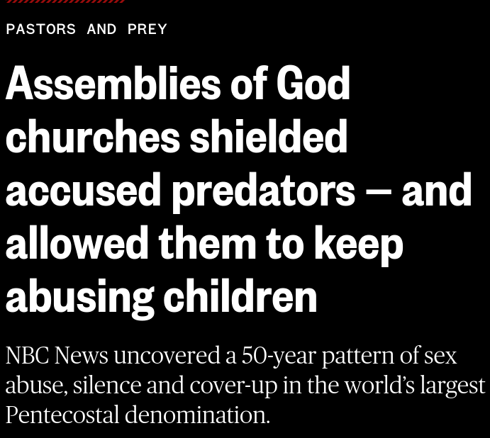 Anonymous Child rape coverup discovered (...) 10/30/25(Thu)07:49:46 No. 1453643 https://www.nbcnews.com/news/us-news/assembly-god-church-shield-predators-child-sex-abuse-allegations-rcna240213 >>