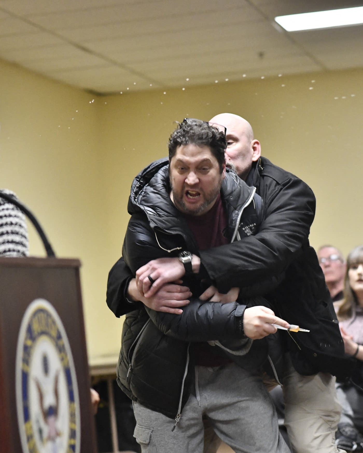 The suspect used a syringe to spray the congresswoman, who was addressing supporters in Minneapolis, Minnesota, about the ongoing protests against ICE.
