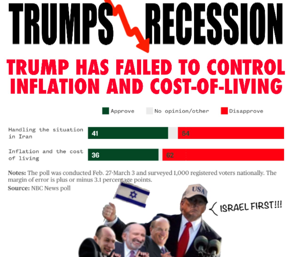 And they don’t like his actions on Iran, with the U.S. now at war with the nation after Trump ordered strikes starting last weekend — strikes a majority say should not have happened.