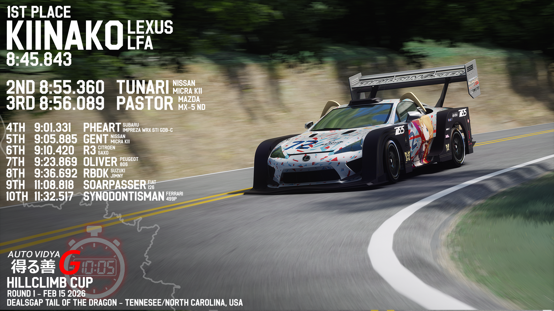 congrats to Kiinako for winning round 1 of OVG hillclimbto those who participated, thank you for showing upmore details about round 2 will be announced soon tm