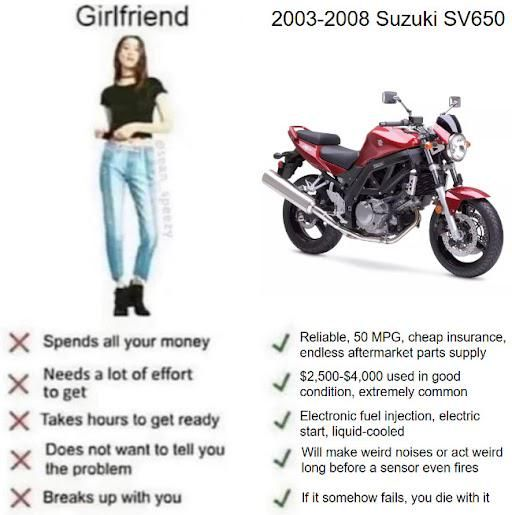 >>28780272lol i was looking at getting a sv the other day, suzuki put a lot of kando in that bike.