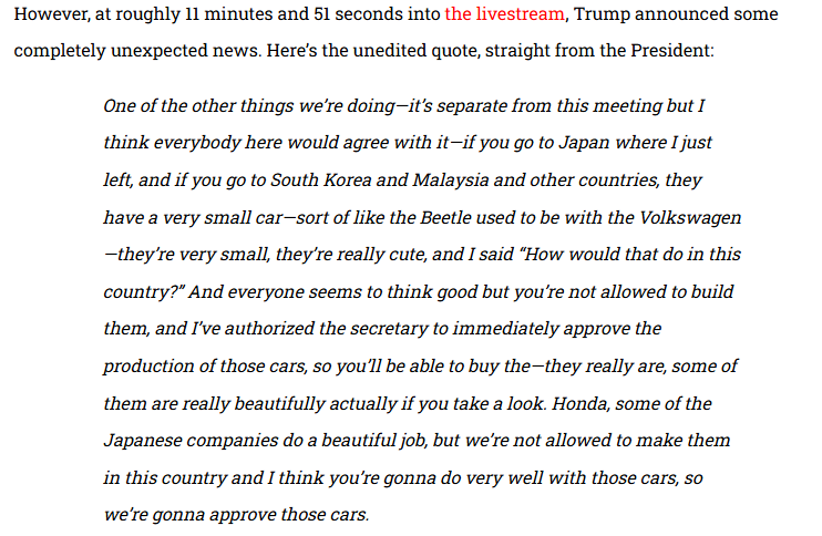 how does /o/ feel about Trump wanting to bring kei sized cars into the American market?https://www.youtube.com/live/2Ey5TwGj7Cc?t=710s