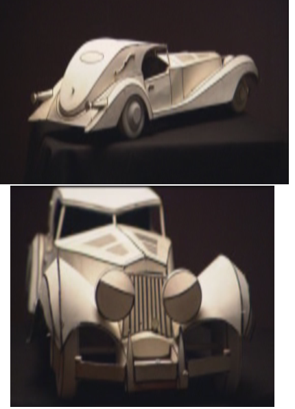 Interesting as I was reading about the 1961 film. The car was animated as a paper model, white with black lines and colorized on film, giving a very distinct look but still blending in with the rest of the animated film. Interesting combination of techniques to create a charming result. pic related is the paper model used in the film.
