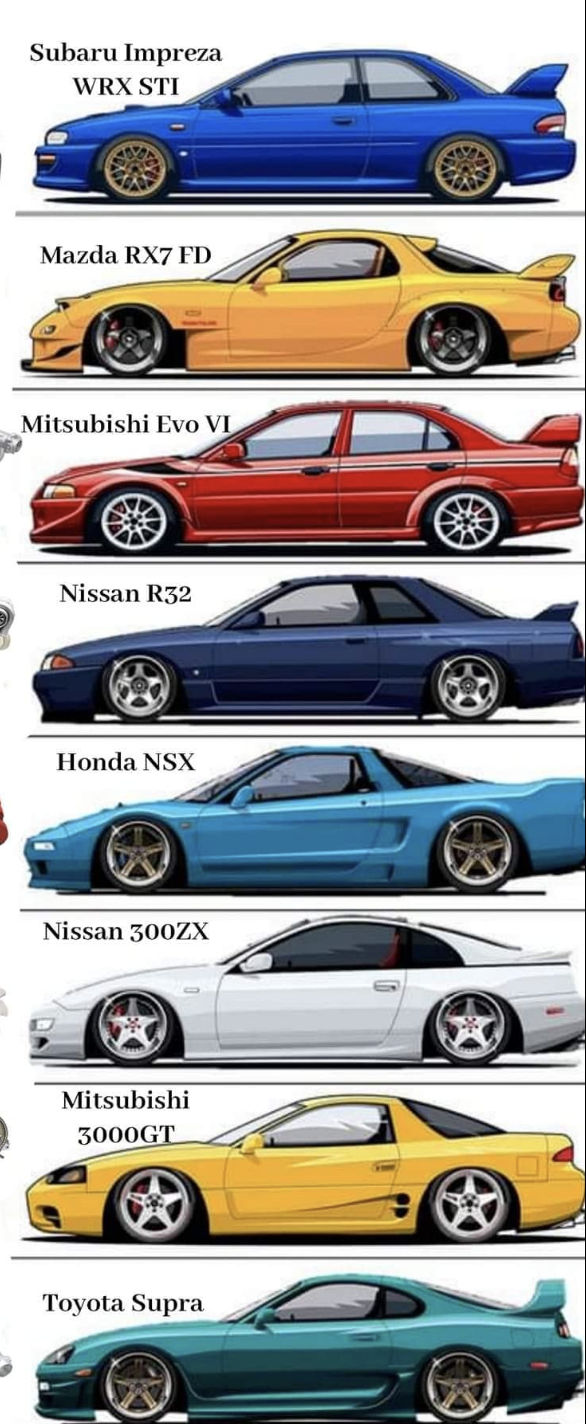 >>28657183Im fine with just a 4 car capacity garage too:1. Mazda RX7 FD (Spirit R Type A preferable)2. Mitsubishi LanEvo 5 GSR3. Honda Civic EK9 Type R4. Nissan Skyline GTR BNR 32Yep that's all i need in my life, one of each drivetrain + something extra.