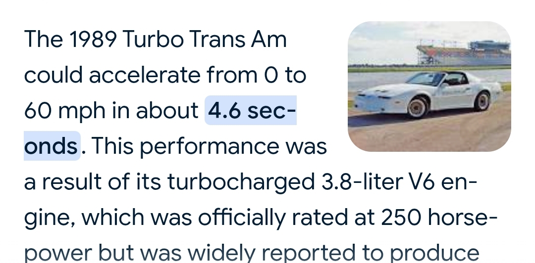 >>28694023Imagine being slower than a 36yr old firebird.