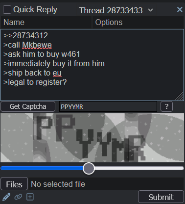 >>28734312>call Mkbewe>ask him to buy w461>immediately buy it from him>ship back to eu>legal to register?