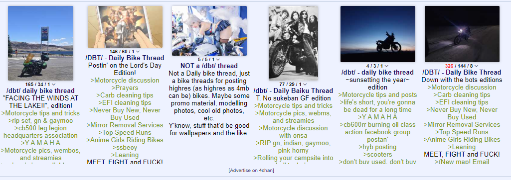 Postin' on the Lord's Day Edition!>Motorcycle discussion>Prayers>Carb cleaning tips>EFI cleaning tips>Never Buy New, Never Buy Used>Mirror Removal Services>Top Speed Runs>Anime Girls Riding Bikes>ssbeoy>LeaningMEET, FIGHT and FUCK!>(New map! Email dbtmap3@gmail.com with pic of bike (hosted) and location to be added):https://www.google.com/maps/d/viewer?mid=1oTvWWrLIUa0wWsds9QQdGmsYzFVYnyxsThis gotta be deadThe Links:>https://www.motocap.com.au/>https://crash.org.au/ratings.php>http://a2bikes.co.uk>https://cycle-ergo.com>https://sharp.dft.gov.uk/helmetsTwist of the Wrist II: https://www.youtube.com/watch?v=ClmFaHuJUDUSTREET SMARTS: https://www.youtube.com/watch?v=AtG6MRIVtZgBakuon Link: https://nyaa.si/view/1319990FAQ: https://pastebin.com/xu560p4qREAD THE STICKY: >>23526953 Prev: >>28763568Thread Tune: https://www.youtube.com/watch?v=7OG8vof031w