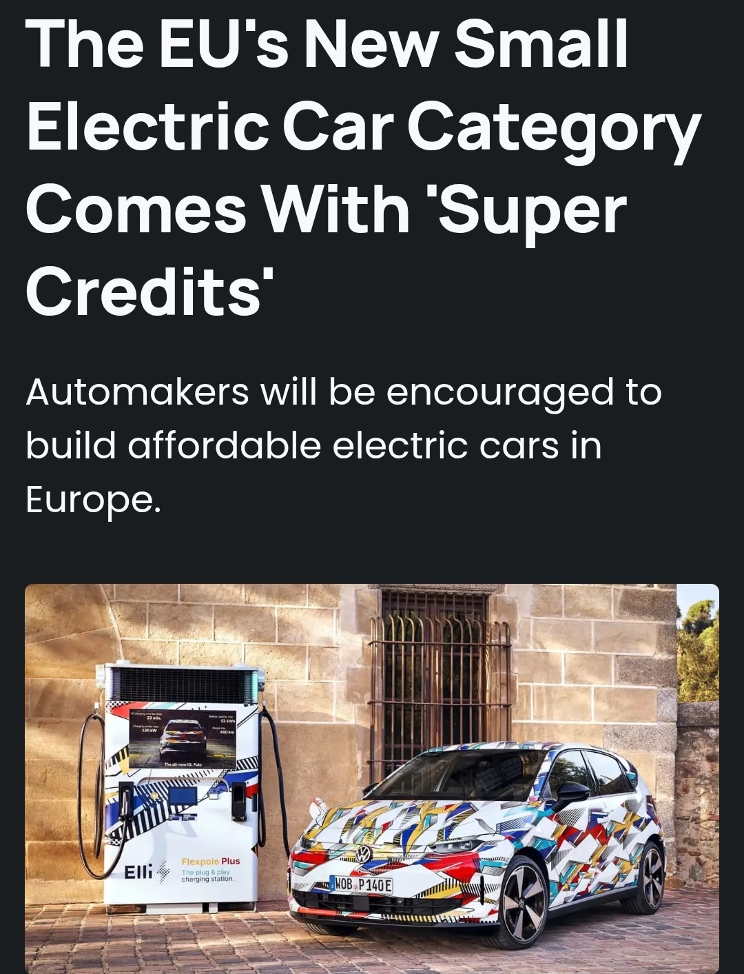 This is in the wake of Volkswagen CEO recently saying that small cars from now on will be primarily electric>The European Union may be loosening fleet emissions targets to allow combustion engines beyond 2035, but it still firmly believes that “the future is electric.” While new regulations usually add headaches for automakers, there’s one bullet point in the EU’s “Automotive Package” they should universally welcome. It calls for the creation of a distinct subcategory of small electric vehicles, dubbed “M1E.”>How small? To qualify for the M1E class, a car must be no longer than 4.2 meters (165.3 inches). That’s still considerably larger than Japan’s kei cars, which are limited to 3.4 meters (133.8 inches). Length isn’t the only requirement, though. These vehicles must be fully electric and assembled in one of the EU’s 27 member states.>Automakers will be encouraged to develop small EVs through so-called “super credits.” An M1E-certified vehicle will count as 1.3 instead of the usual 1, effectively delivering a 30-percent advantage toward CO2 compliance targets. The EU also wants to freeze the requirements for this new class for 10 years, giving manufacturers the stability needed for long-term planning>The EU believes establishing the “M1E” category will simplify the legal framework for member states looking to incentivize small EVs through subsidies, tax breaks, and discounted charging. Owners could also benefit from road toll exemptions and preferential access to lanes or parking.https://www.motor1.com/news/782180/eu-new-small-electric-vehicle-category/