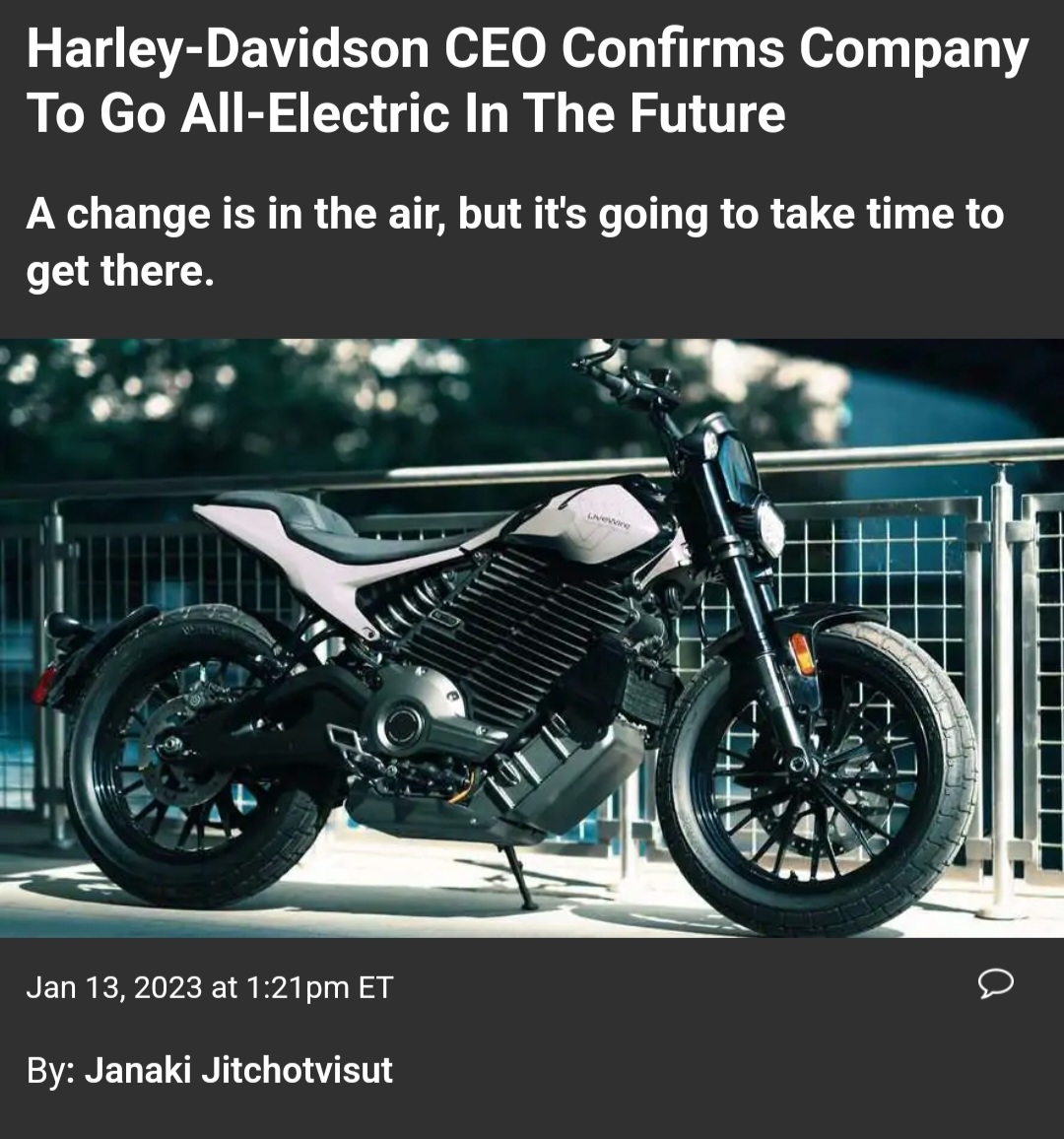 >>28774897All brands will go all electric in the future, or die. It's not a matter of if but when. Of course it won't be as soon as some people seem to think but I can guarantee no one will be selling gas bikes in a 100 years, and if I'm wrong then I won't be alive to be called out on it.