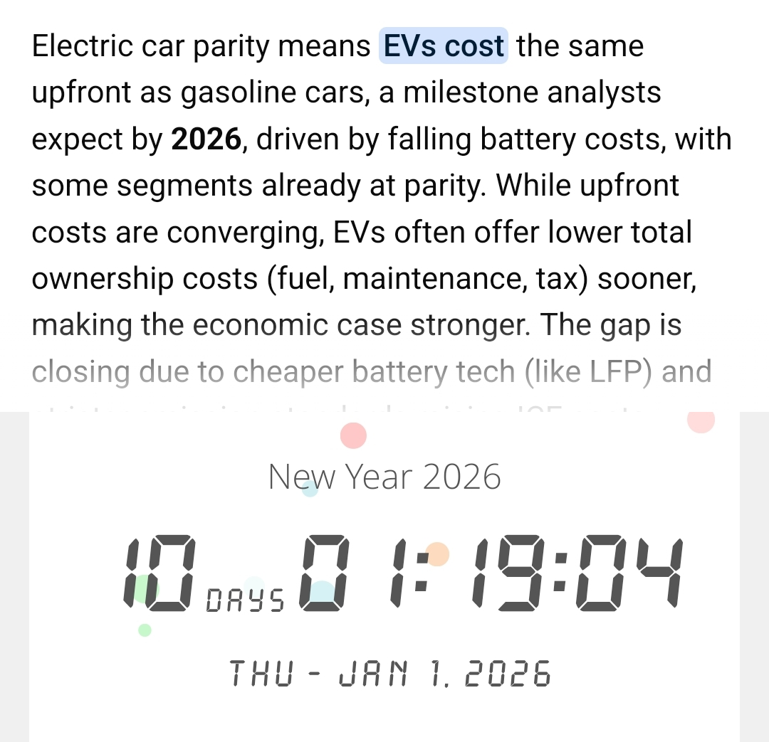 10 days remaining for EV-ICE price parity