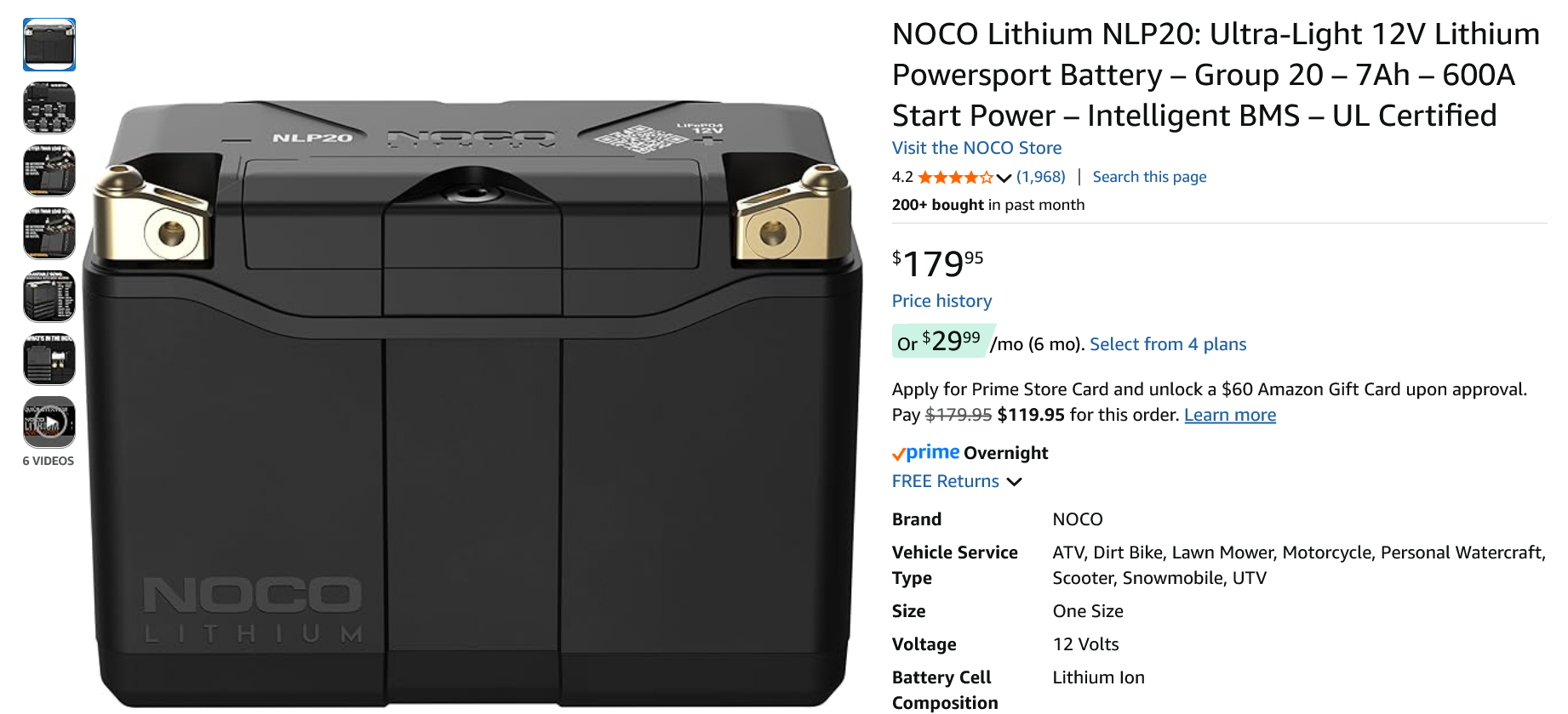NOCO lithium ion battery. best battery ive ever owned. spent 6 months with no charge and fired right up. and costs the same as an oem battery for it. its like 3 years old now and has never seen a trickle charger in its life