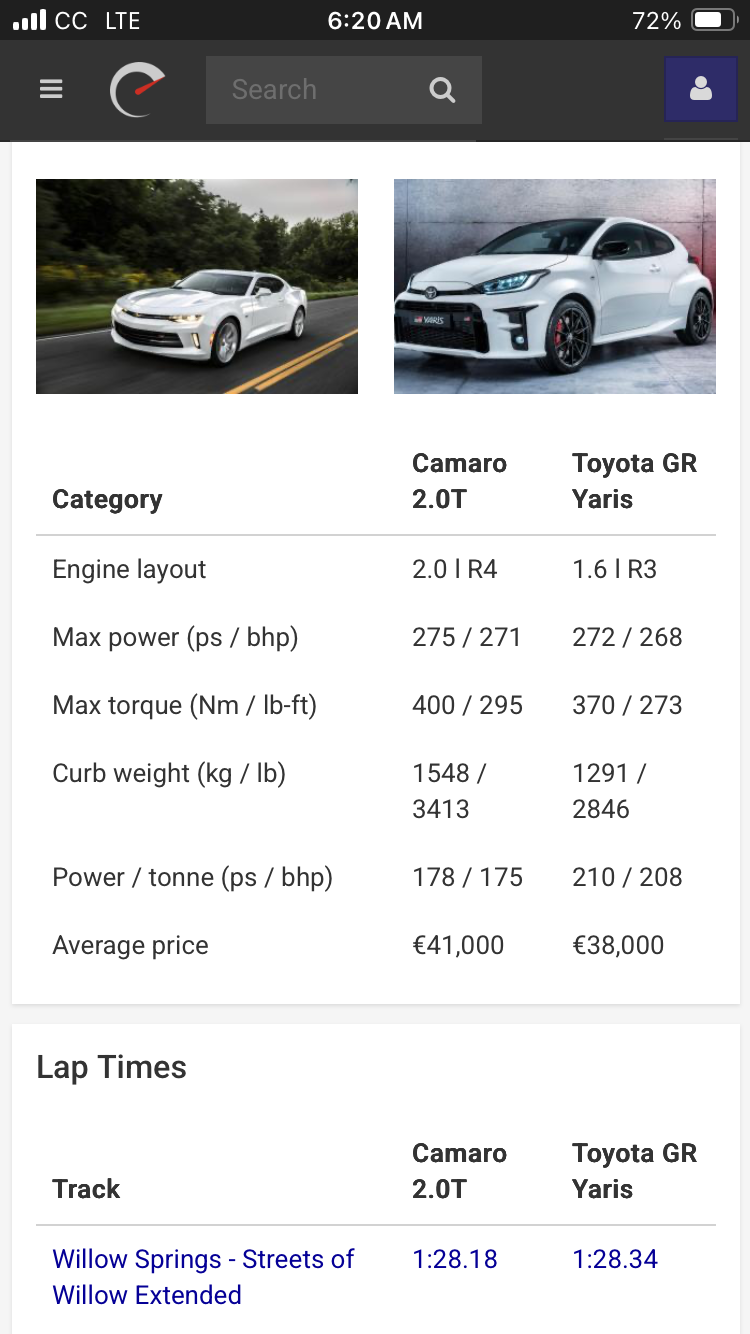 >>28794448Yaris was literally half eye blink slower. Just a few more hp might may fix it.>>28795487>>*coping noises*2 l Camaro is a cope. It's a muscle car with no muscles. Or a pony car with not enough ponies, to be more accurate. The difference between those two cars is that 2 l Camaro was the worst of it's kind while GR Yaris/Corolla is probably the only one of its kind (awd manual hot hatches) since Focus RS went out of production.