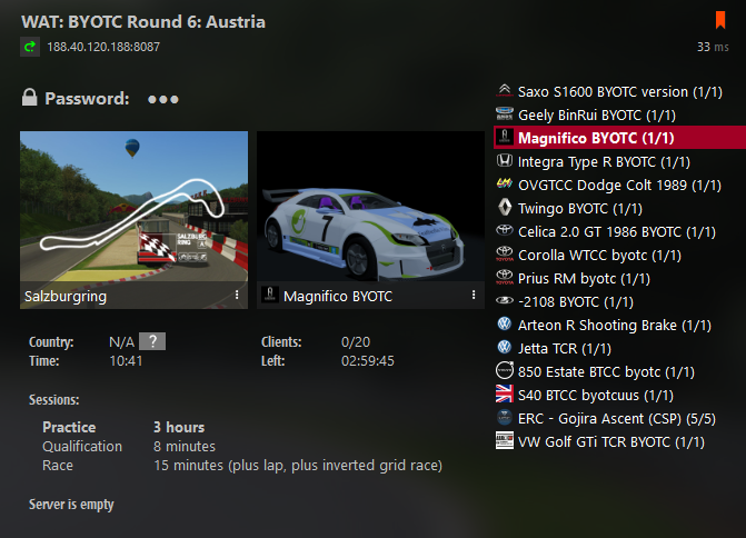 BYOTC Server for tonights round 6 is up and running and ready to go. There is no patch this week, nor will there be for next weeks final round. See you tonight!