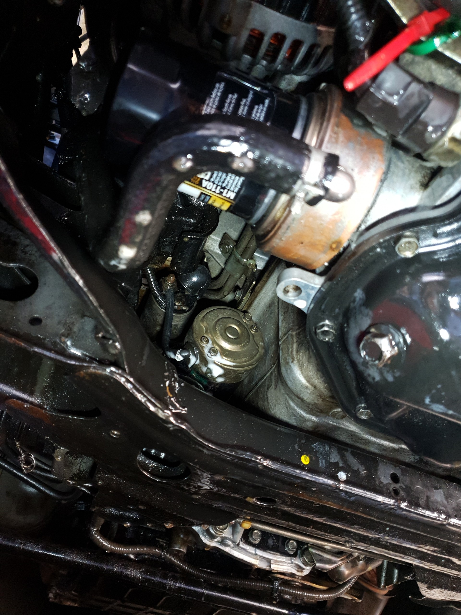 My oil cooler oring basically turned to goo, allowing a pretty massive leak that coated my entire engine including wrecking the alternator. So I ended up having to hose this down with degreaser for a few days and then replaced the oring. It was Hella annoying.