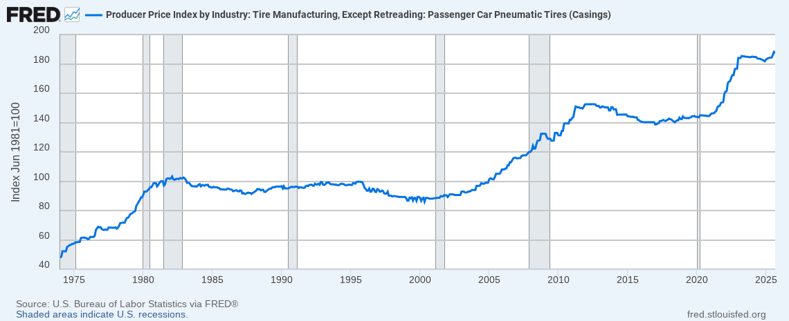 Tires haven't gotten cheaper when they should be cheaper.