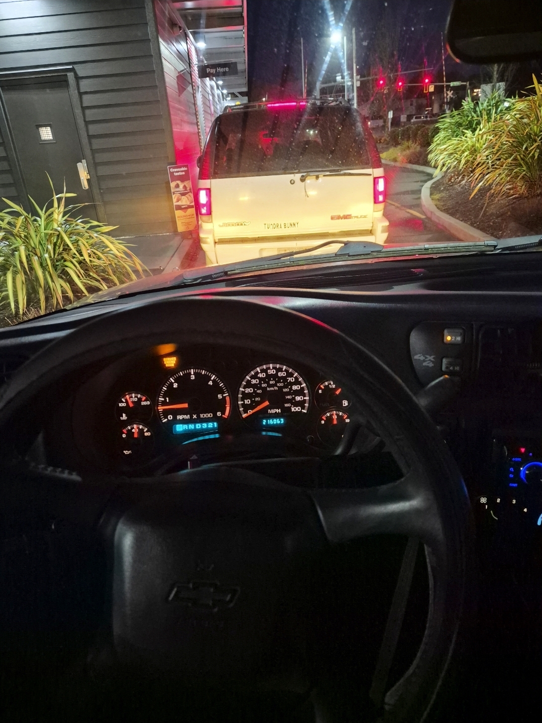 In the blazer at McDonald's, sitting behind a GMC Jimmy :-)