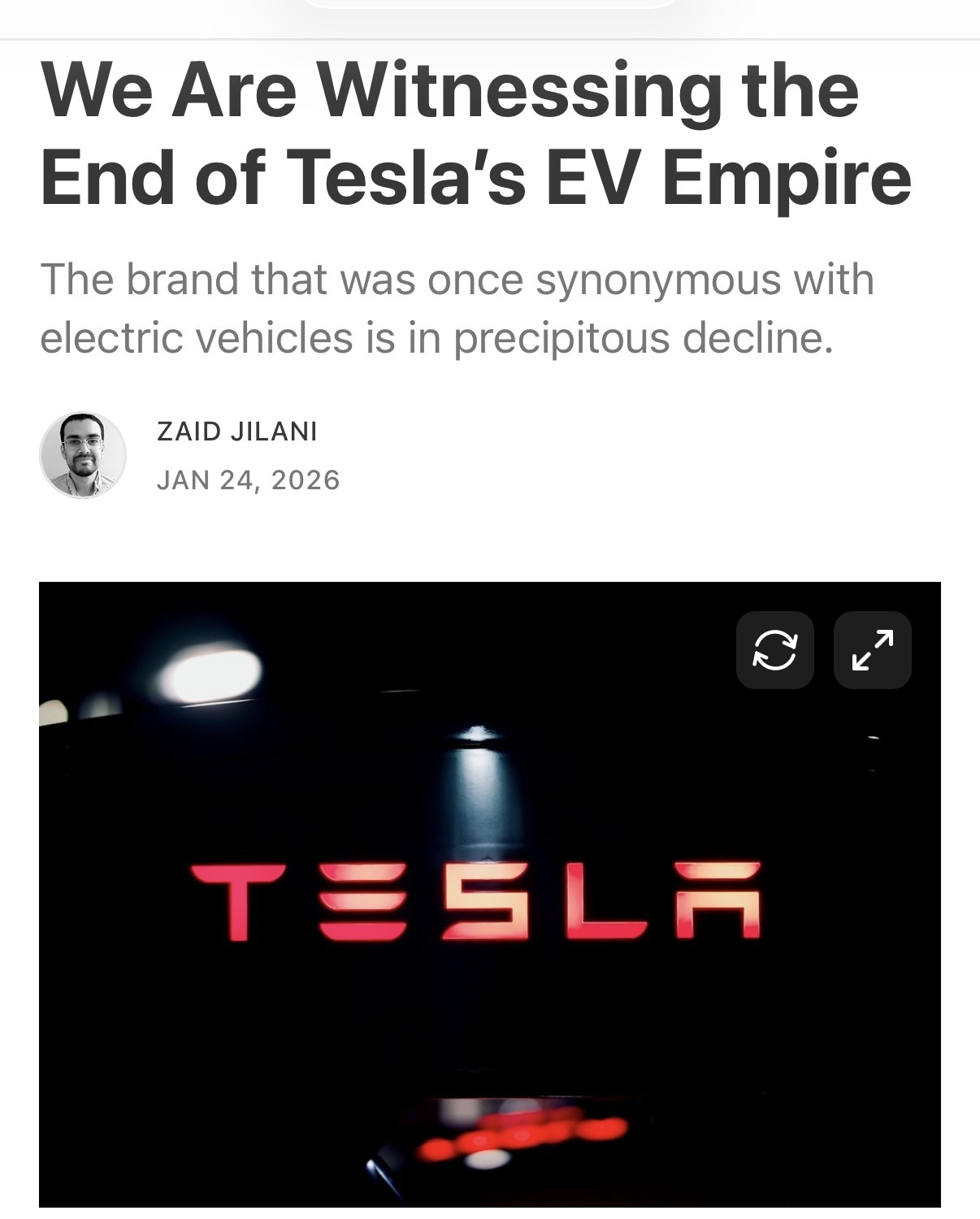 >>28820610Yeah, you don't think that had anything to do with Trump's tariffs and the European brands finally releasing EVs that can compete with Tesla? >but muh mainstream media news articleNo, clearly it's because European leaders didn't like that Elon Musk endorsed Donald Trump and they all told their citizens to boycott Tesla in their weekly EU meeting. What an idiot I am!