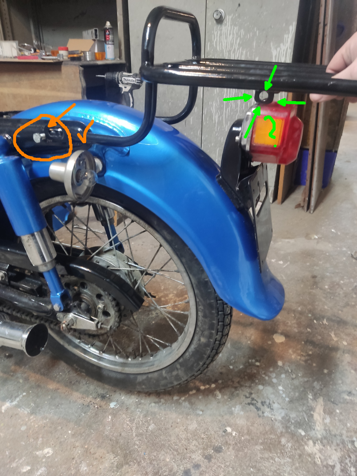 send helpI don't know how I'm supposed to mount this rackthe bit marked in orange bolts on where the saddle bolts on, that's fine. I need to get some steel cut to support it at the eyes marked in green, but I don't know where they're meant to attach to
