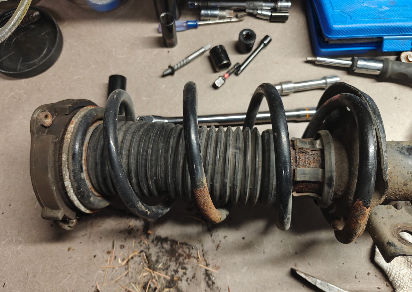 I was about to put the strut together but then I realized I don't have an offset wrench for that top strut nut. Gonna try Amazon's finest offset box end wrench set .