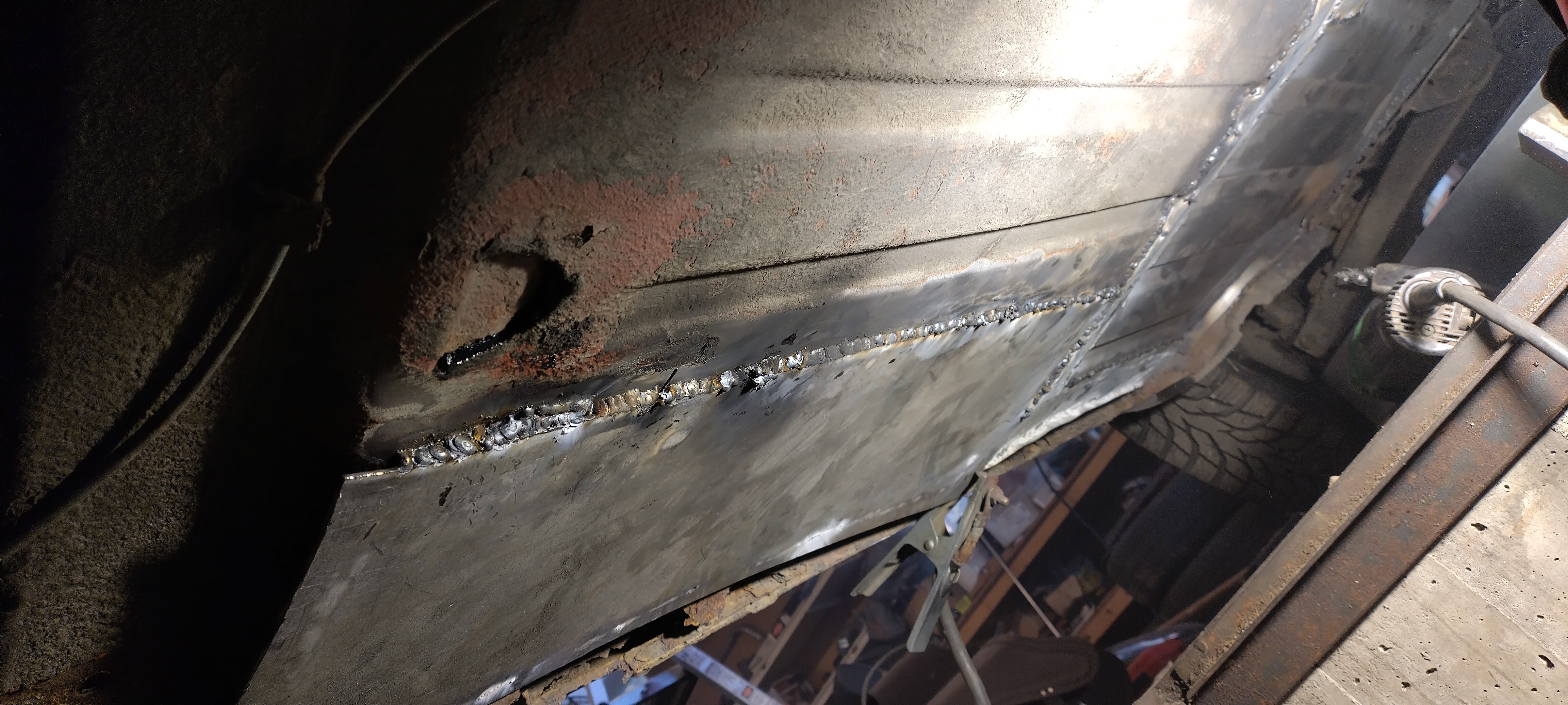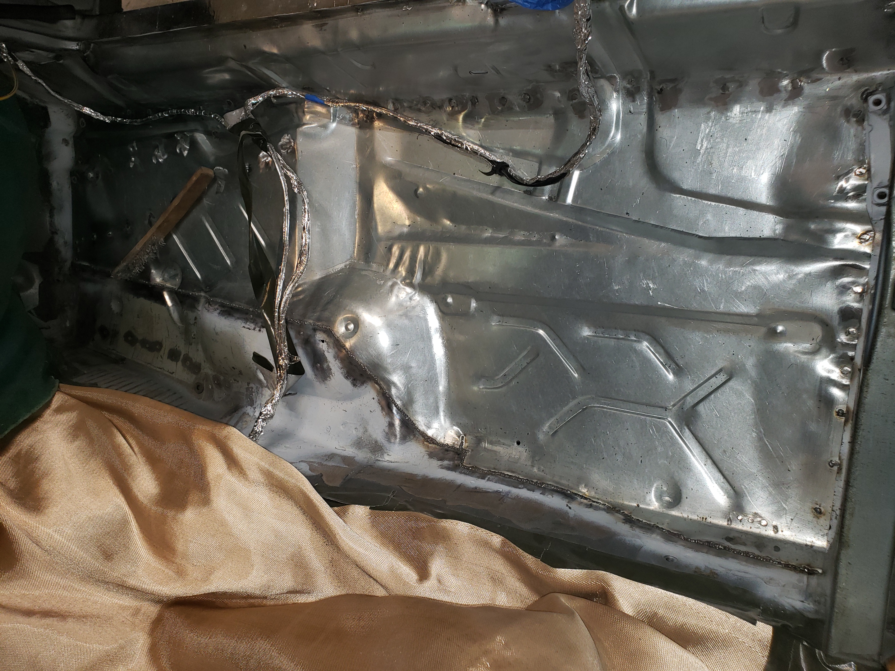 Welding continues, the rust was worse than I anticipated, should've just stripped the whole floor and cut it all out instead of trying to patch it together.I'll know better for the next car
