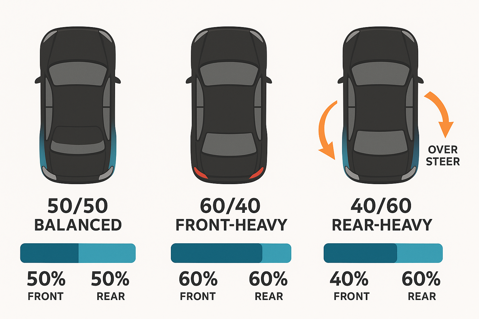 when manufacturers advertise a car's weight distribution, what do they assume the average driver's weight will be? how do manufacturers from RHD countries ensure that the distribution is the same when redesigning their cars for LHD markets, since they can't completely mirror everything? when people tune cars with aftermarket parts, how do they factor for adjustments in weight? i know lighter cars are ideal, but at what point does the change in weight distribution need to be addressed?