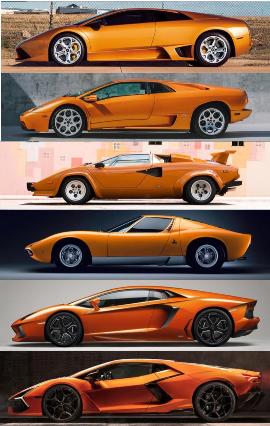 Based on their best versions: Countach > Miura > Murcielago > Revuelto > Diablo > Aventador