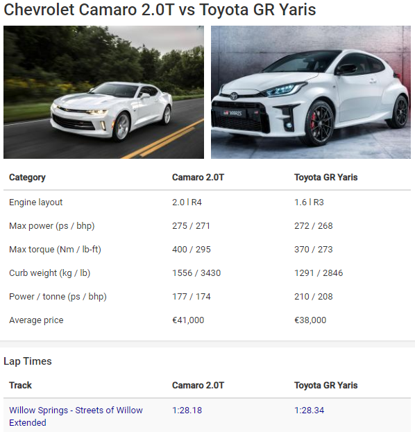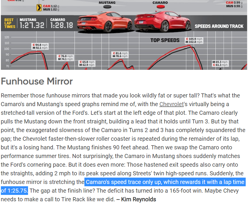 The camaro is faster on summer tires.