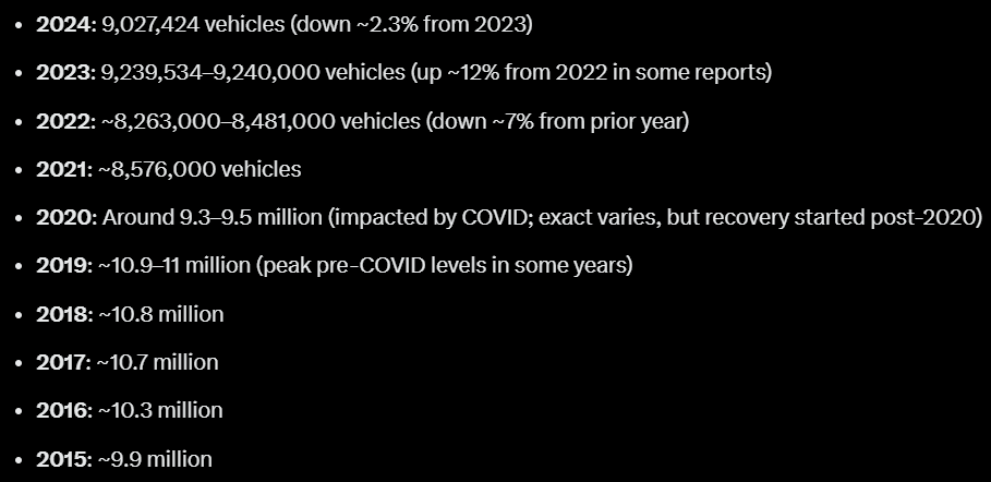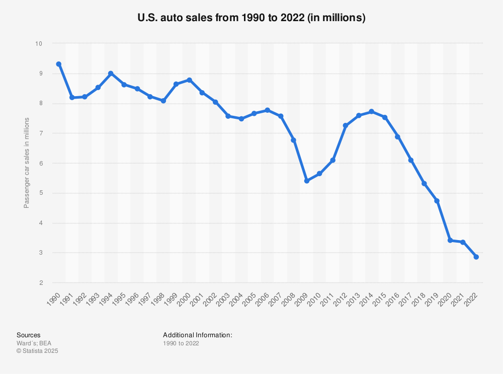>>28874675Do you actually think new vehicle sales have dropped 80% over the last 30 years?