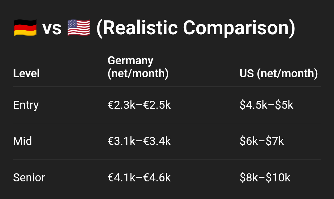 >>28874959So here's the deal. Germans will seethe if they see my post.The smart Germans who could design a good electric car have no reason to try. It's not that le government is fucking us up, it's pic related.The German is piss poor. If you're any kind of smart and actually good at your job you'll be headhunted by americans who will pay you double.