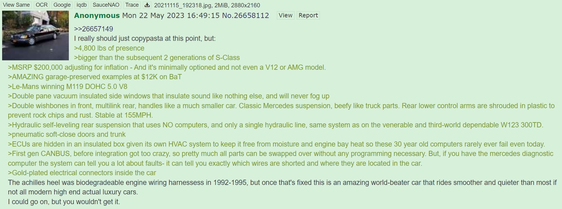 >>28877017It's funny how Mercedes made their best S Class and very worst S class back to back, as the one that followed was an absolute pile of cheap shit.