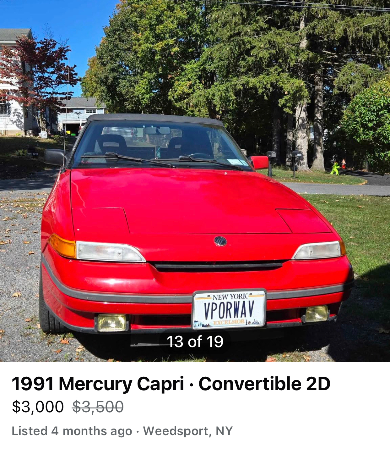 >'91 Mercury Capri with license plate "VPORWVE" What sort of individual do you imagine