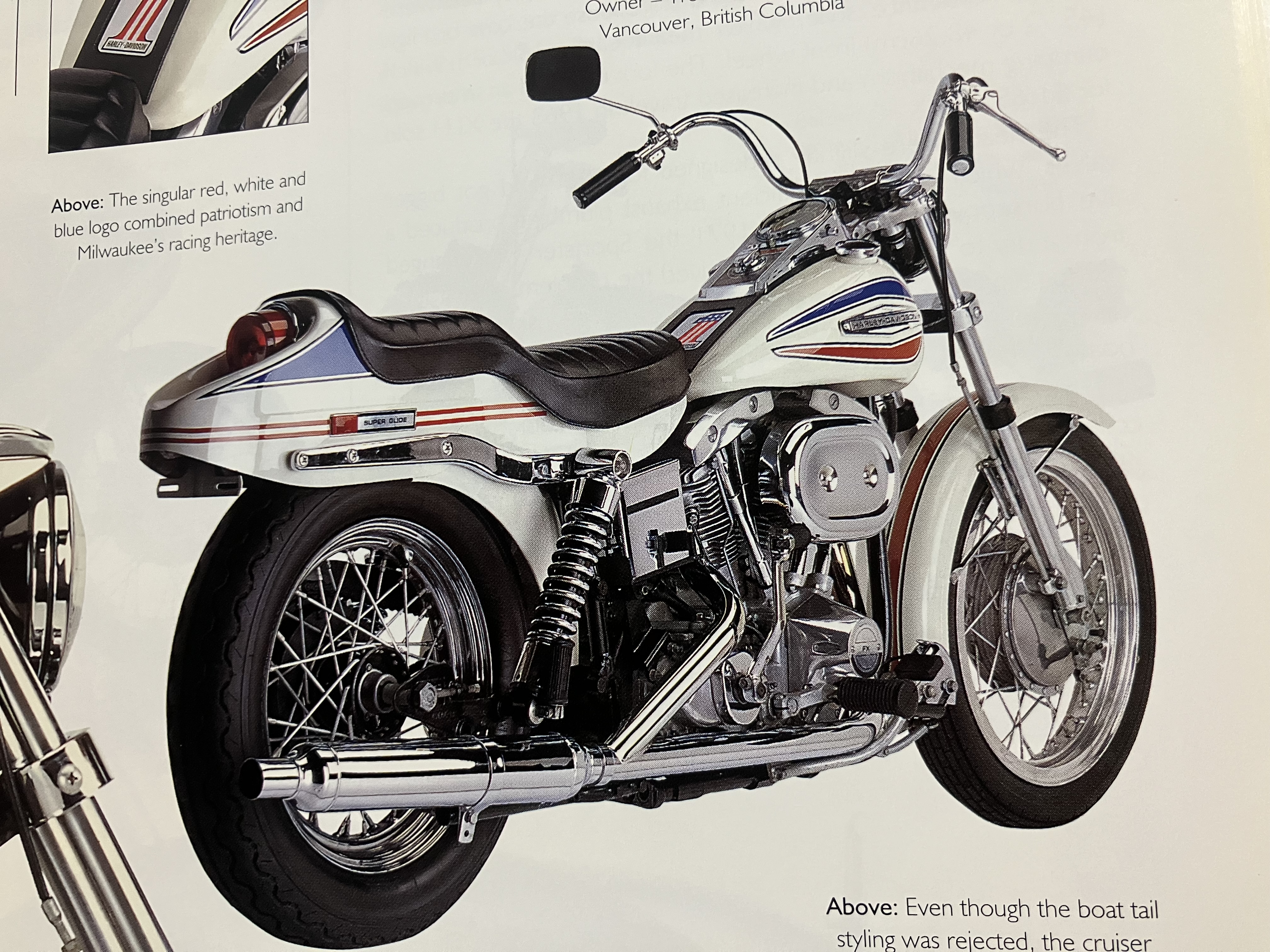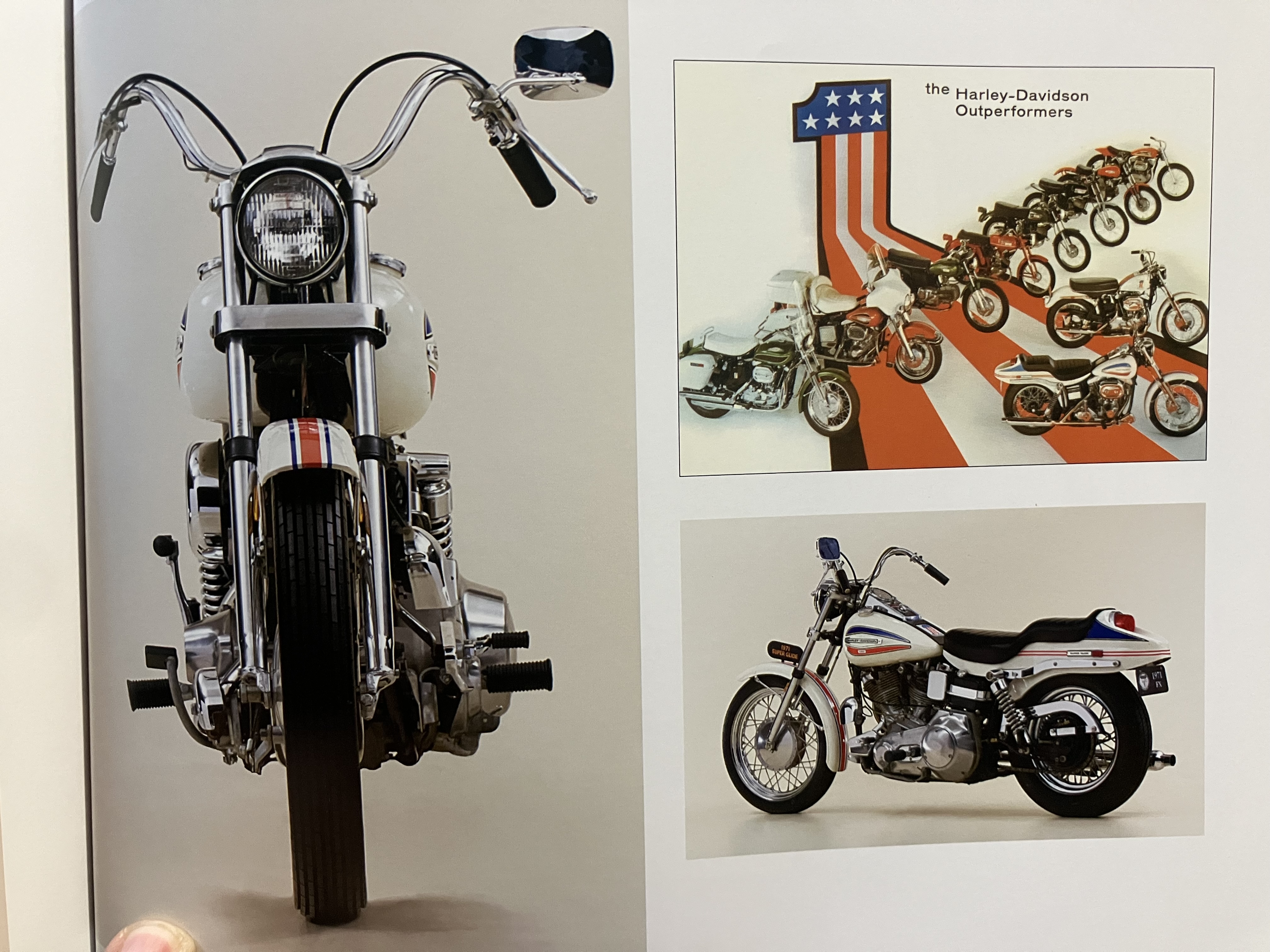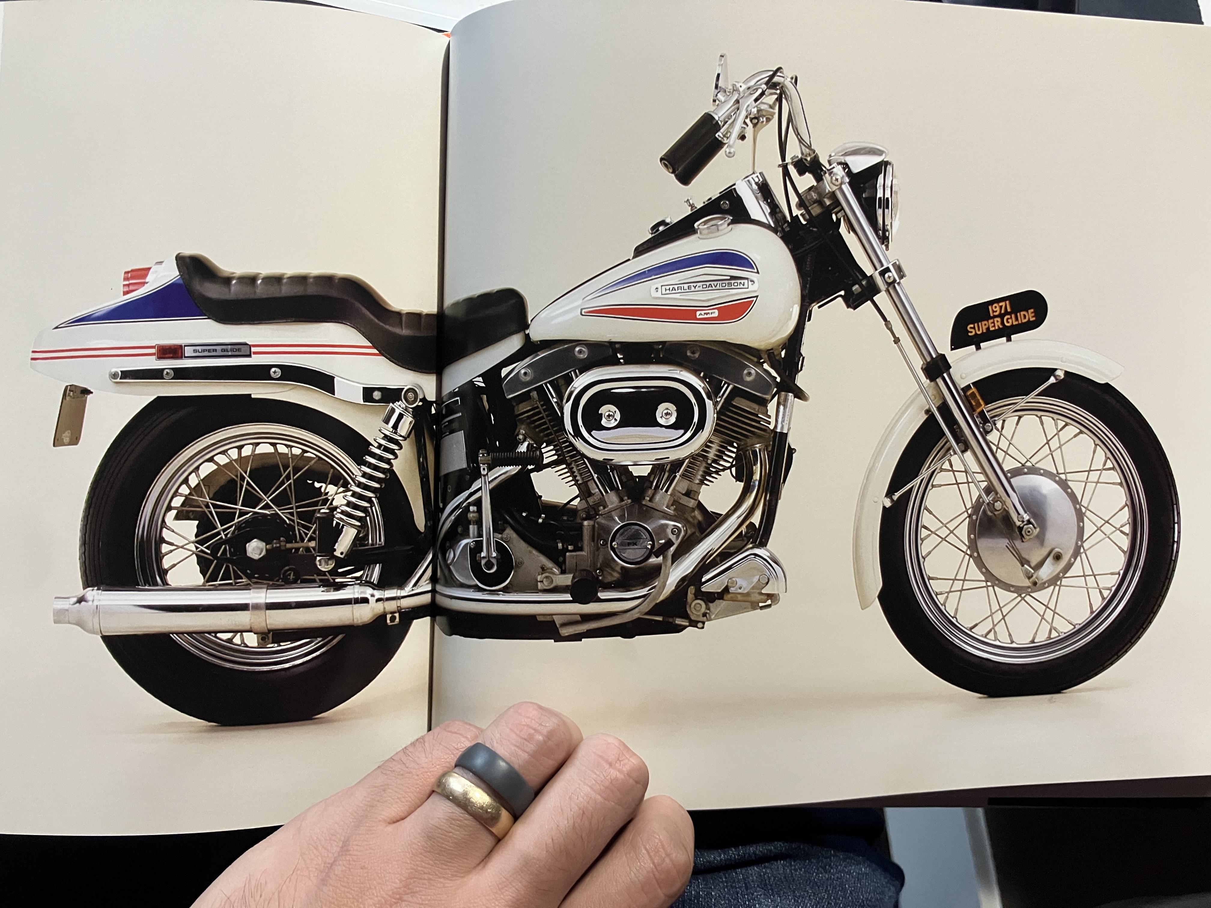>>28888371My personal bike? I’m the anon with the NC700 I really love the way vintage Harley’s and Indians look is all so I picked up these books More for the super glide :This example is painted in what the Motoe Company calls “Sparkling America” - white, with red, blue, and white Mylar panels on the fenders and tanks. The factory assembled 4,700 FX models in 1971, and this version sold for $2,230