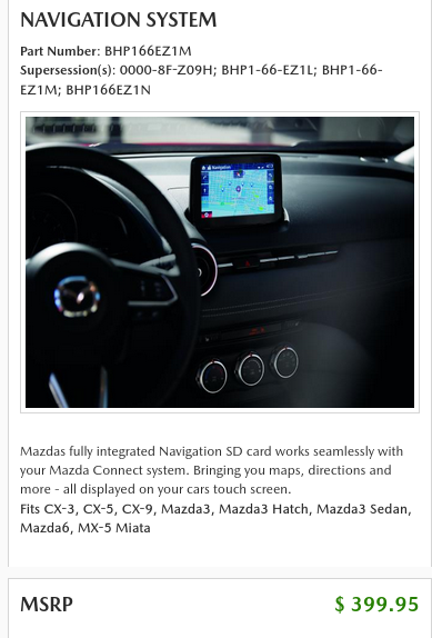 Mazda one is shit it's based on Nokia maps. You can buy the sd cards for 1/4 the price on Amazon and it comes with 3 years of map updates. But they all come with Android Auto so who cares? t. Parents have cx5