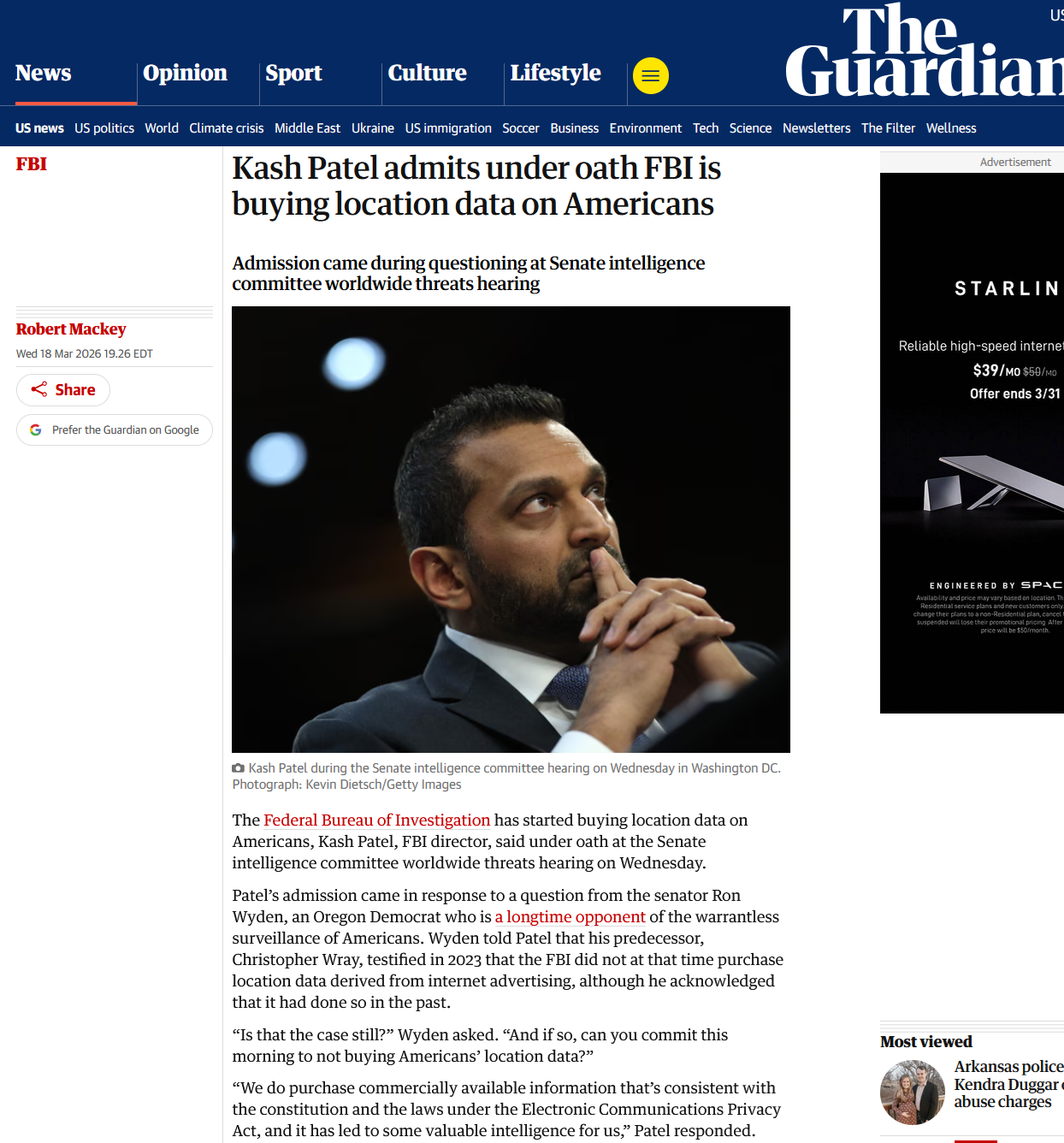 Did anyone see the FBI director admit this Wednesday that they are buying data broker data to bypass needing a warrant to spy on citizens?Anyone?