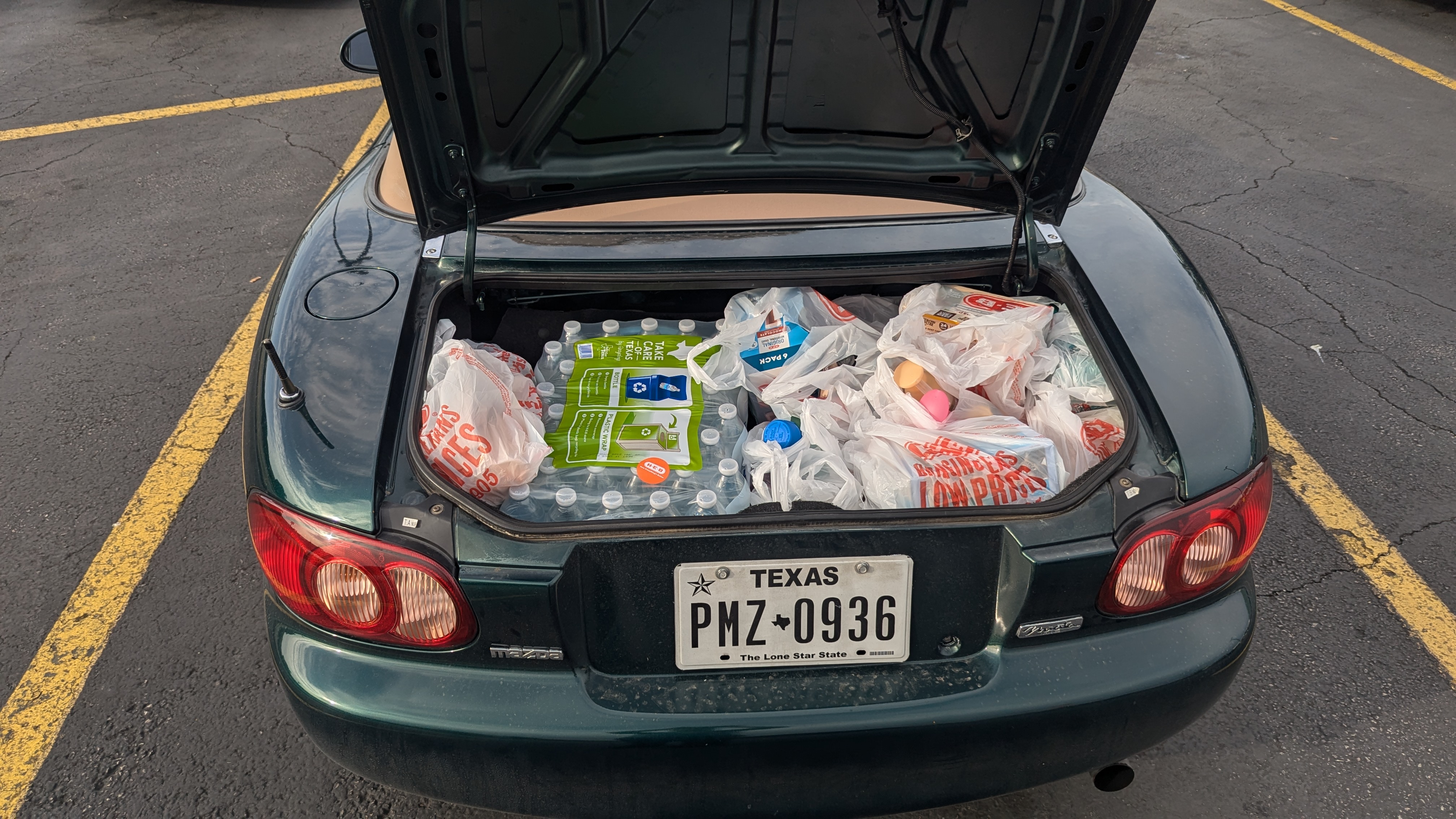 What groceries are you carrying in a miata? Besides condoms, astroglide, and an assortment of cucumbers