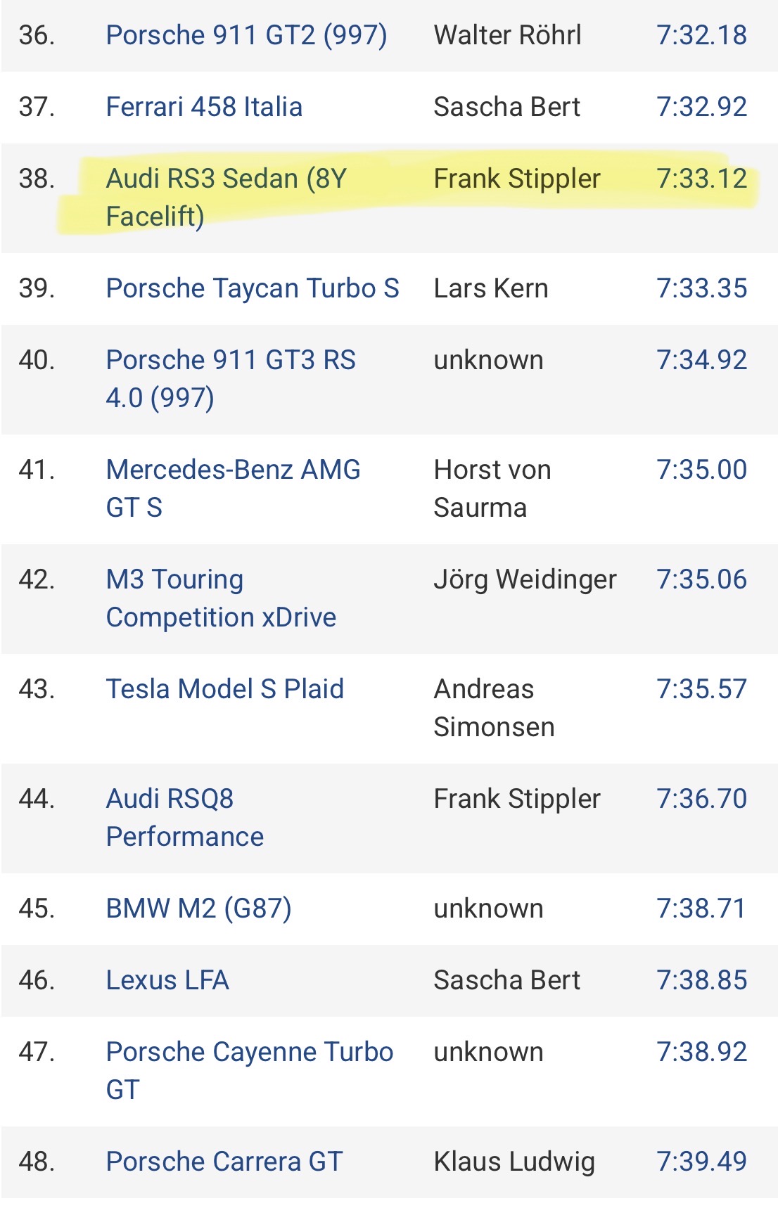>>28893398Honestly didn't expect that. Where are the M2, Supra, GT on that list though? How the fuck is it above the GT3 RS 4?RS3 is the type of car I fully expect a CTR to smoke on the track.