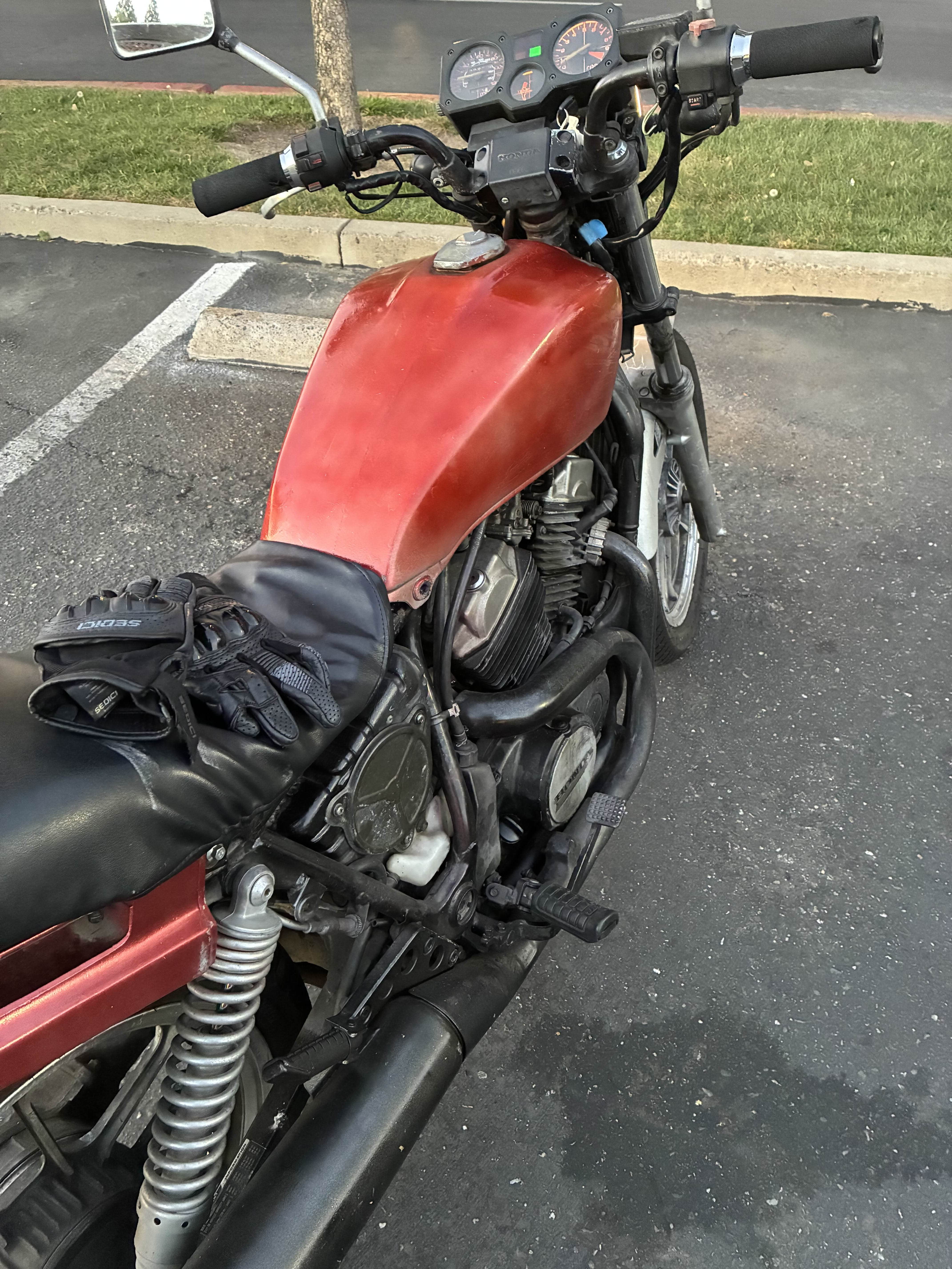 >>2889419084 VT500 ascot, fun little bike wanted an 80s V and this popped up stupid cheap so i had towaiting on all the fuckass gaskets to arrive so she’ll stop spitting oil all over me also my speedo light went out tonight :<
